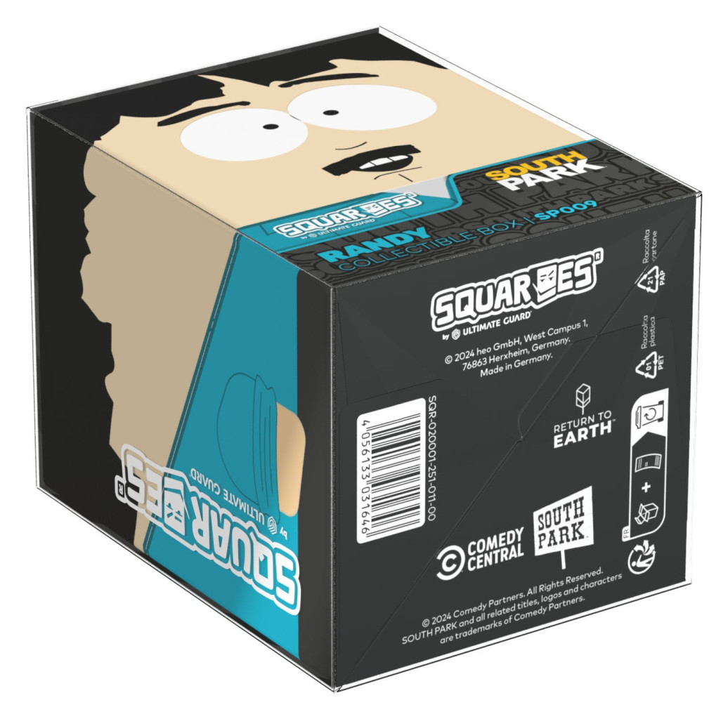 Sammelbare Box zur Aufbewahrung von TCG-Decks, Tabletop-Zubehör und/oder Sammlerstücken. Der Randy Squaroe aus der South Park™-Edition bietet als Deck-Box benutzt Platz für bis zu 100 Spielkarten in doppelter Schutzhülle. Squaroes werden aus 78% erneuerbaren Rohstoffen hergestellt und passen perfekt in das separat erhältliche Collectors Case.