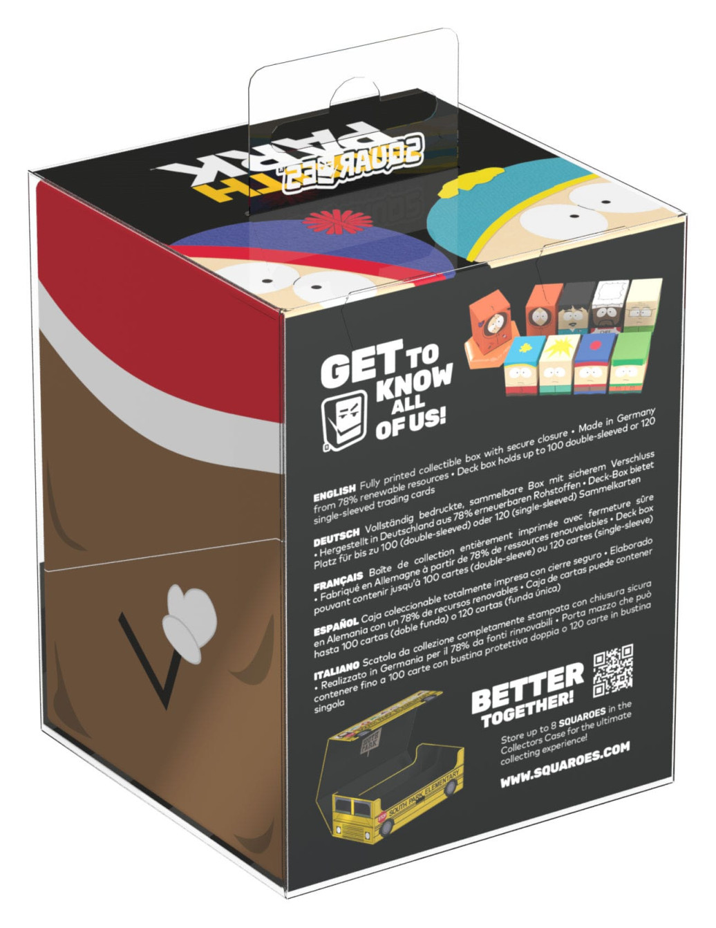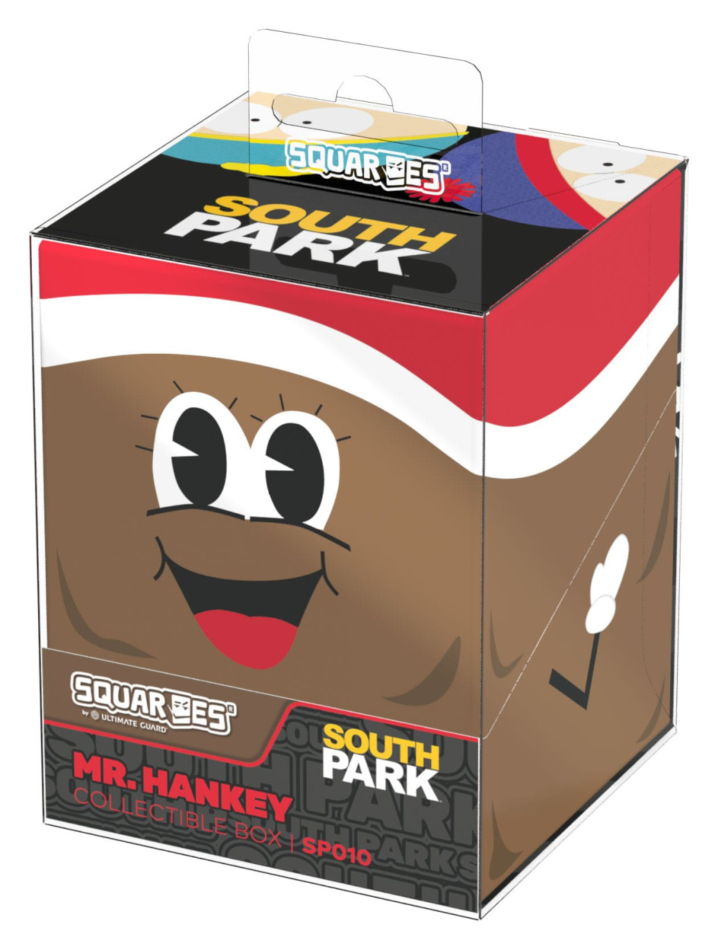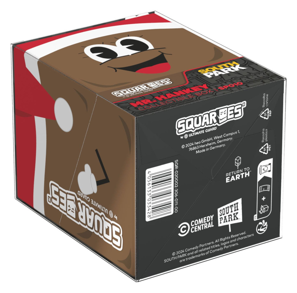 Sammelbare Box zur Aufbewahrung von TCG-Decks, Tabletop-Zubehör und/oder Sammlerstücken. Der Mr. Hankey Squaroe aus der South Park™-Edition bietet als Deck-Box benutzt Platz für bis zu 100 Spielkarten in doppelter Schutzhülle. Squaroes werden aus 78% erneuerbaren Rohstoffen hergestellt und passen perfekt in das separat erhältliche Collectors Case.