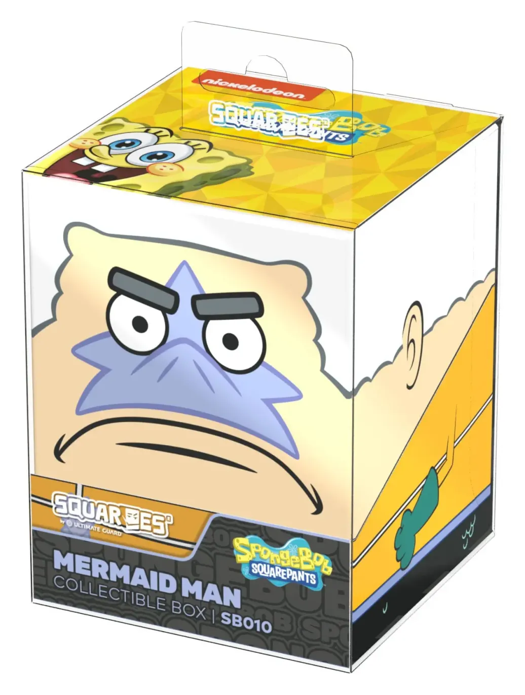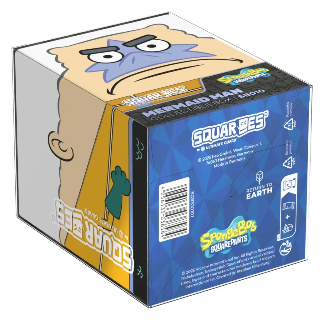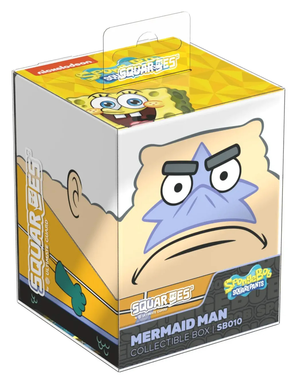 Sammelbare Box zur Aufbewahrung von TCG-Decks, Tabletop-Zubehör und/oder Sammlerstücken. Der Mermaid Man Squaroe aus der SpongeBob SquarePants™-Edition bietet als Deck-Box benutzt Platz für bis zu 100 Spielkarten in doppelter Schutzhülle. Squaroes werden aus 78% erneuerbaren Rohstoffen hergestellt und passen perfekt in das separat erhältliche Collectors Case.