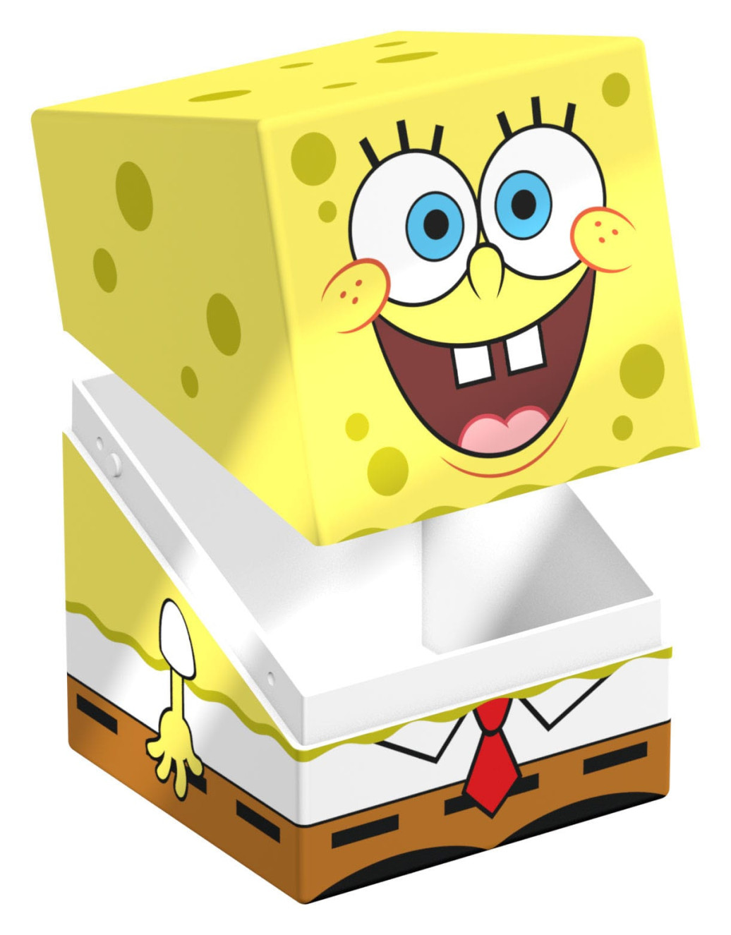 Sammelbare Box zur Aufbewahrung von TCG-Decks, Tabletop-Zubehör und/oder Sammlerstücken. Der SpongeBob Squaroe aus der SpongeBob SquarePants™-Edition bietet als Deck-Box benutzt Platz für bis zu 100 Spielkarten in doppelter Schutzhülle. Squaroes werden aus 78% erneuerbaren Rohstoffen hergestellt und passen perfekt in das separat erhältliche Collectors Case.