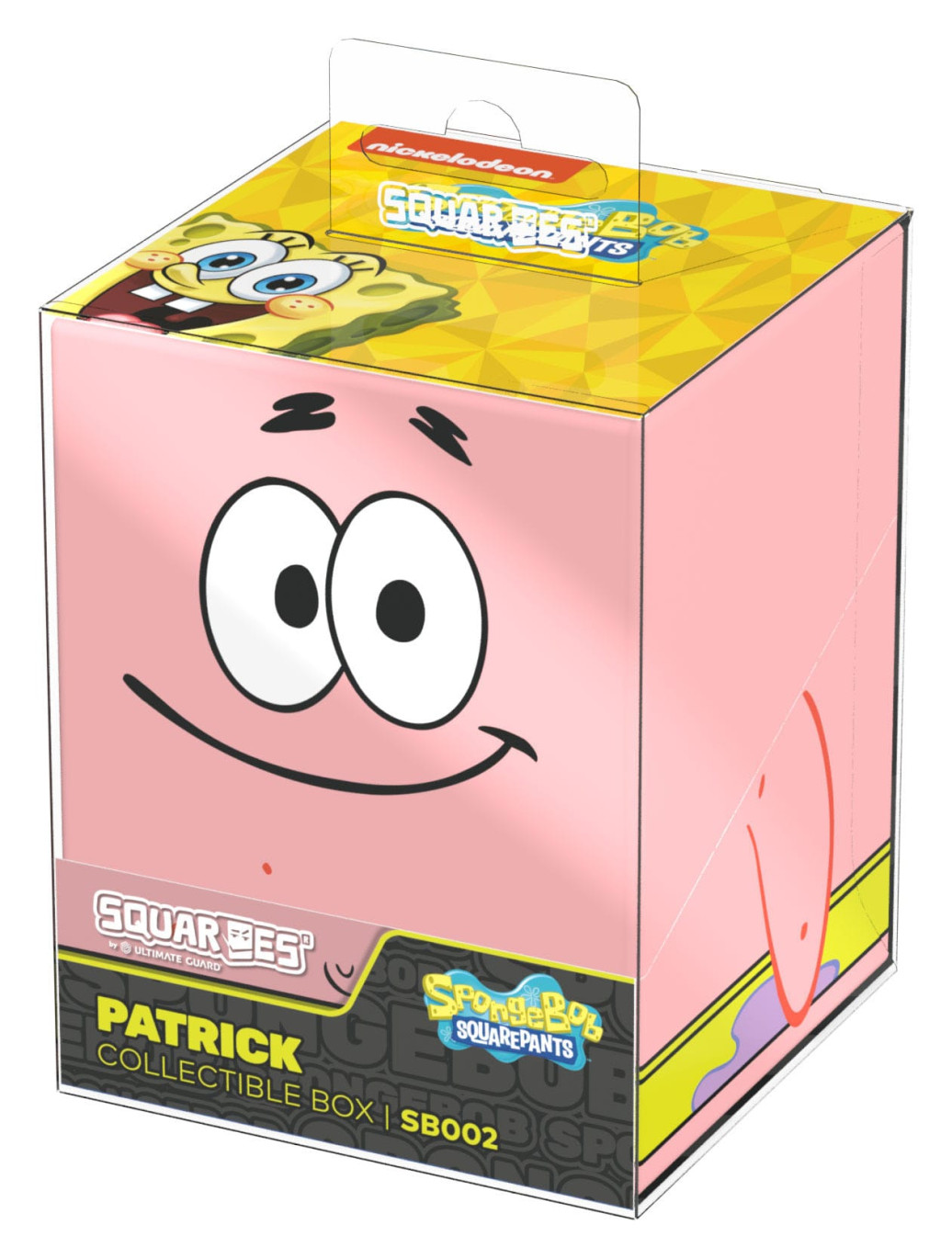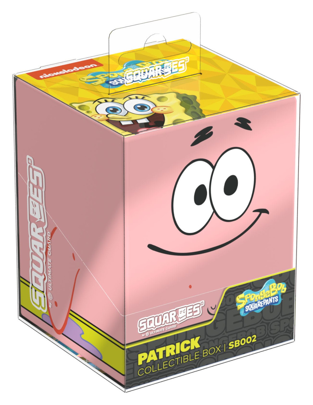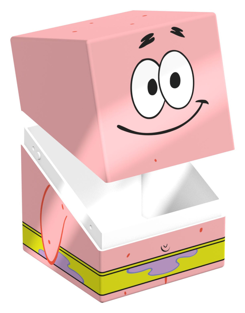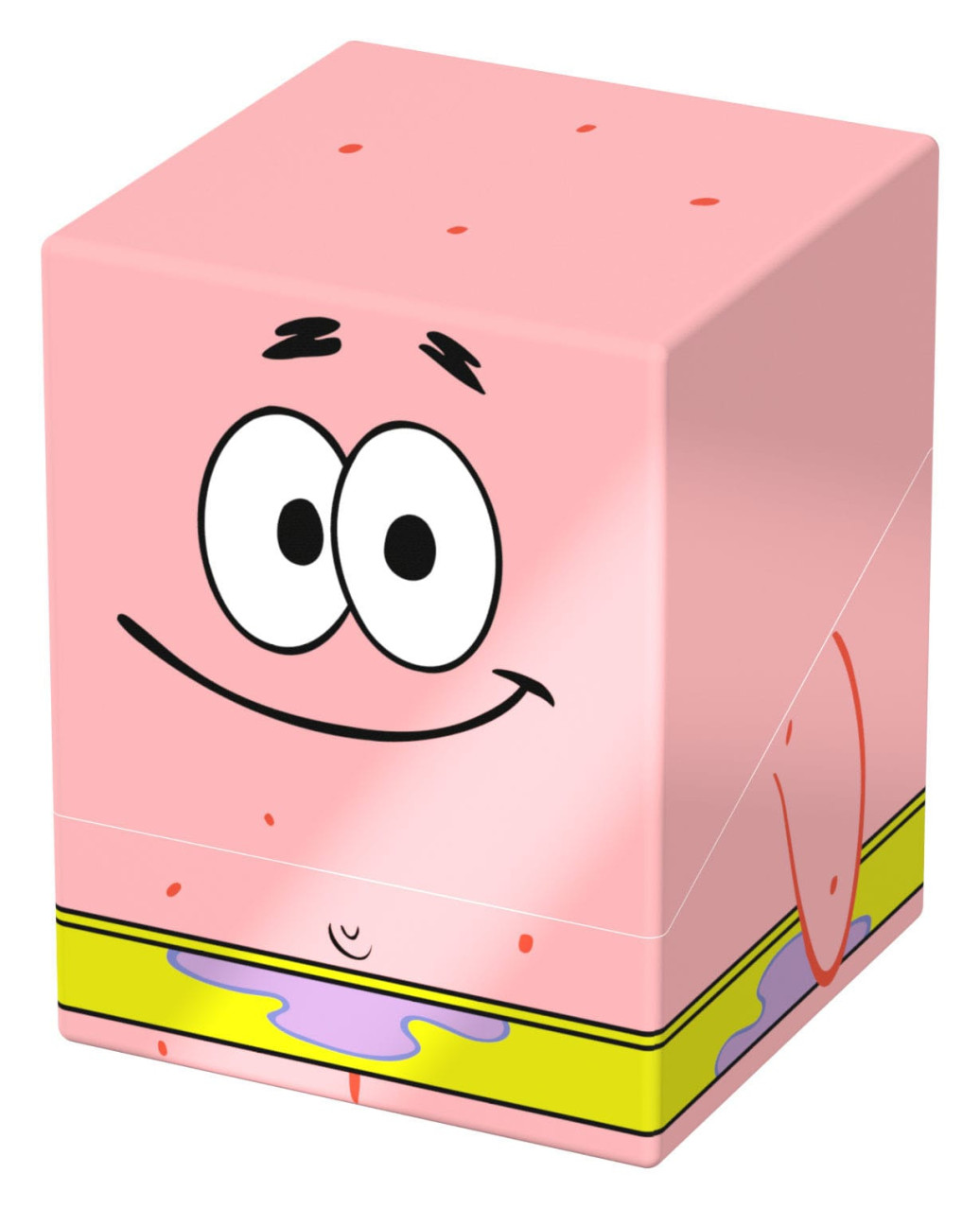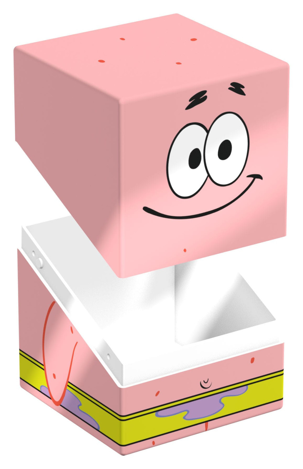 Sammelbare Box zur Aufbewahrung von TCG-Decks, Tabletop-Zubehör und/oder Sammlerstücken. Der Patrick Squaroe aus der SpongeBob SquarePants™-Edition bietet als Deck-Box benutzt Platz für bis zu 100 Spielkarten in doppelter Schutzhülle. Squaroes werden aus 78% erneuerbaren Rohstoffen hergestellt und passen perfekt in das separat erhältliche Collectors Case.