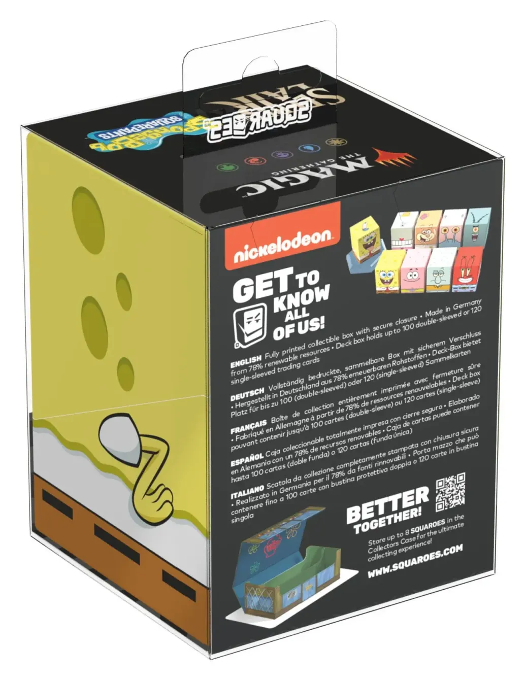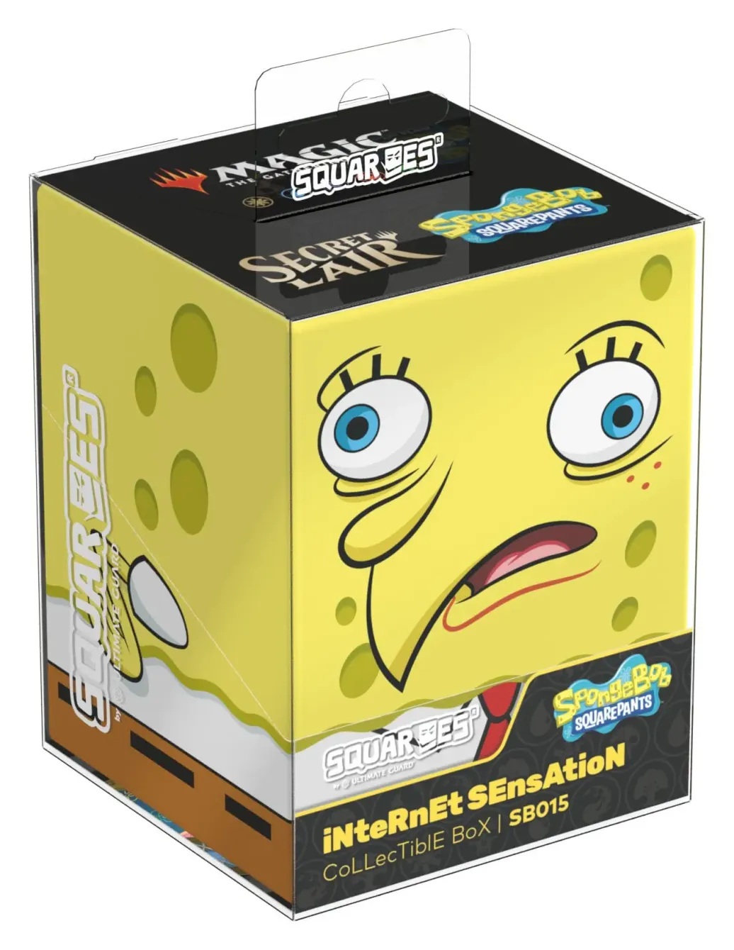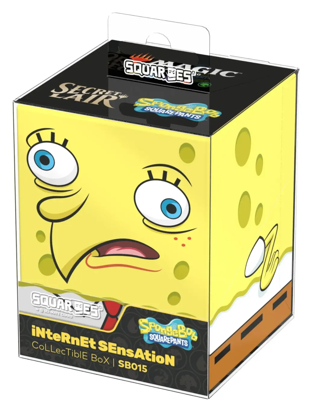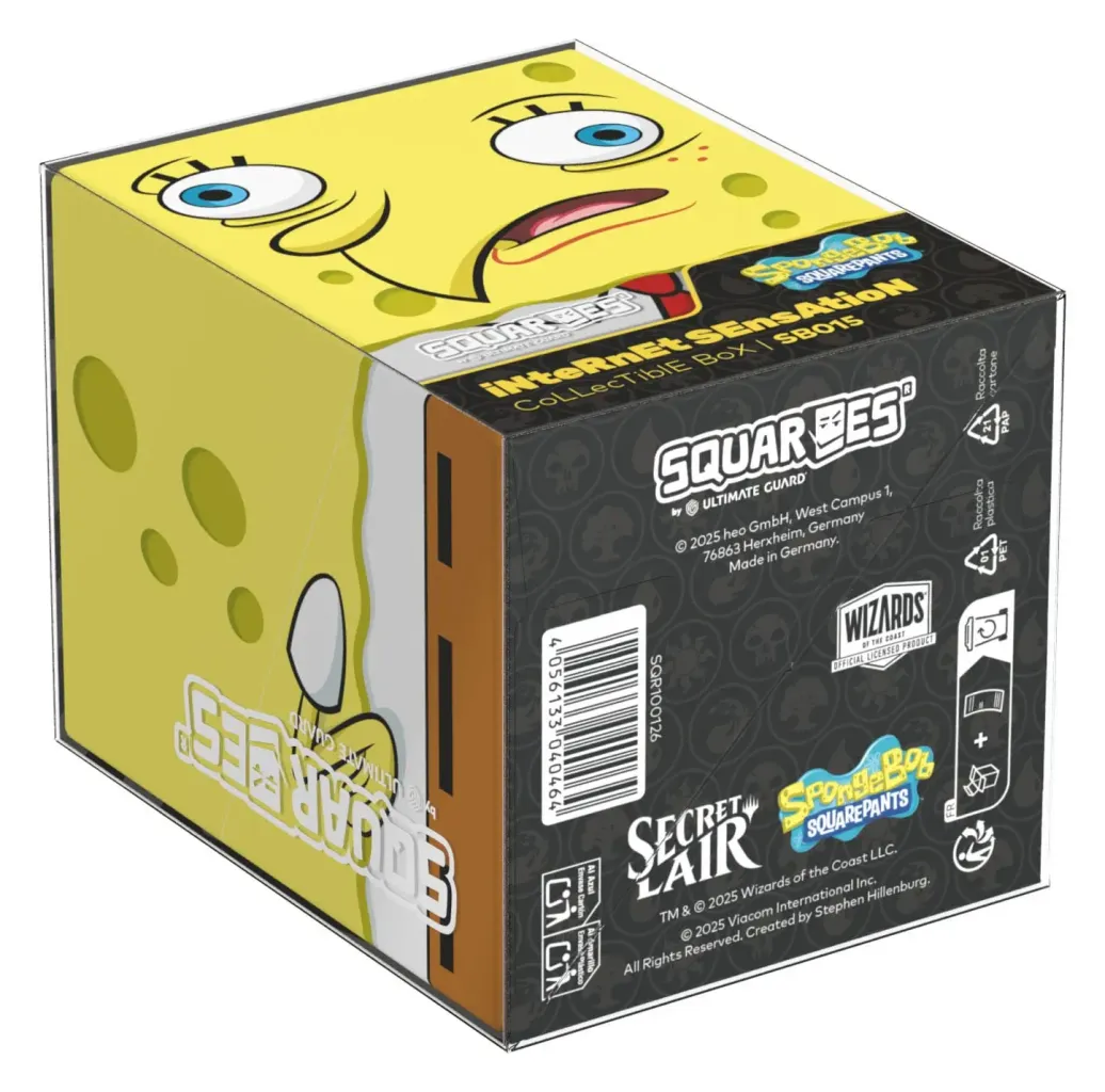 Sammelbare Box zur Aufbewahrung von TCG-Decks, Tabletop-Zubehör und/oder Sammlerstücken. Der iNteRnEt SEnsAtioN Squaroe, passend zum Secret Lair x SpongeBob SquarePants™: Internet Sensation Secret Lair Drop, bietet als Deck-Box benutzt Platz für bis zu 100 Spielkarten in doppelter Schutzhülle. Squaroes werden aus 78% erneuerbaren Rohstoffen hergestellt und passen perfekt in das separat erhältliche Collectors Case.