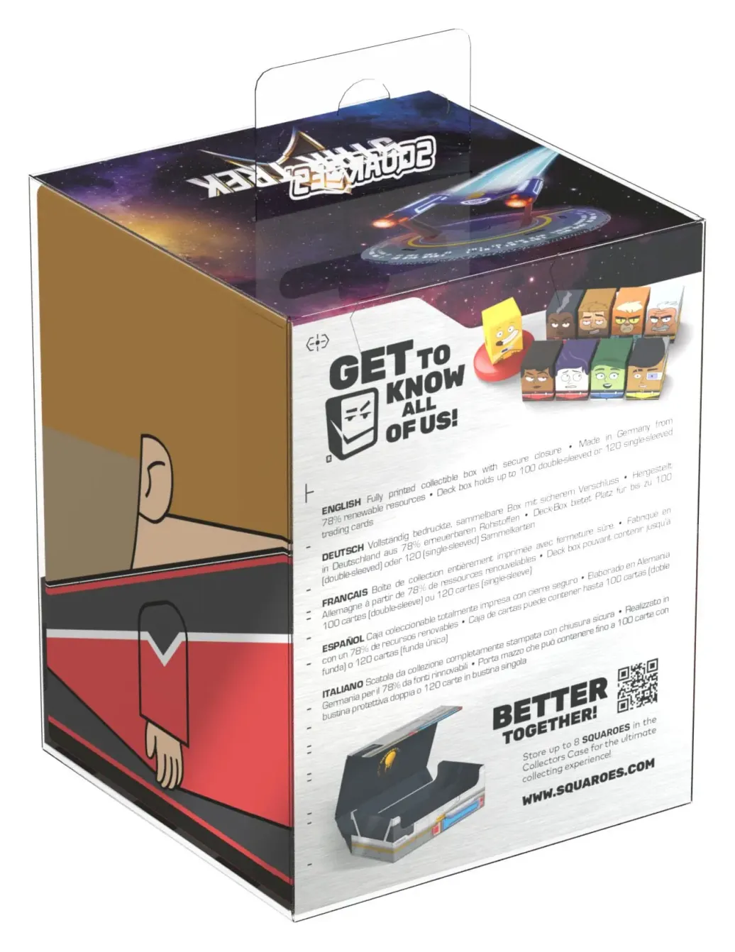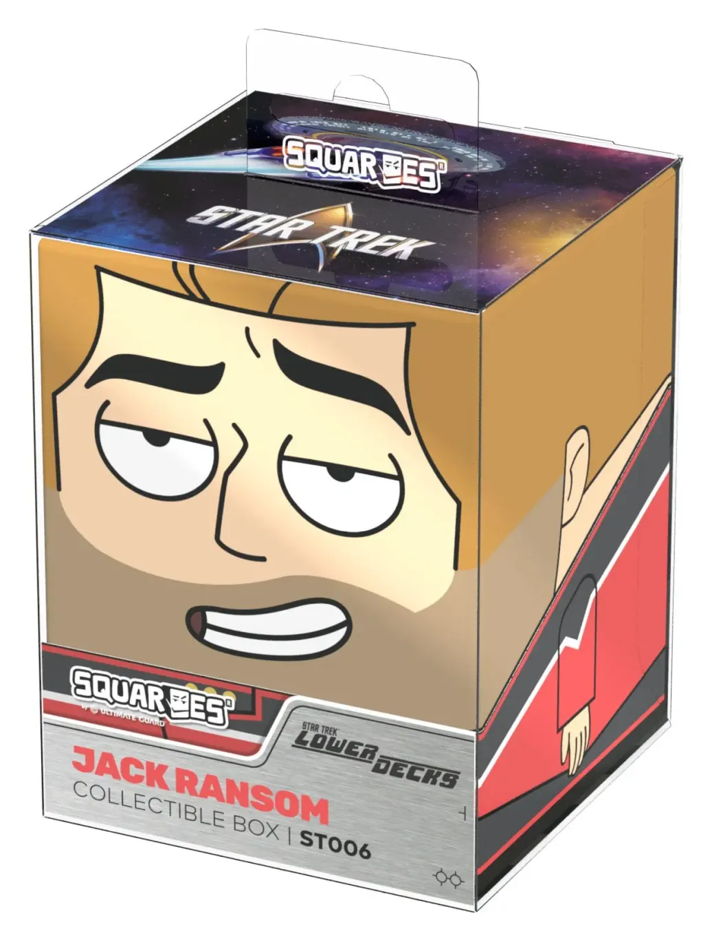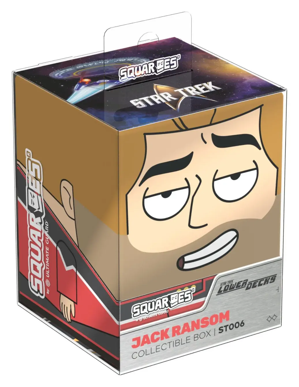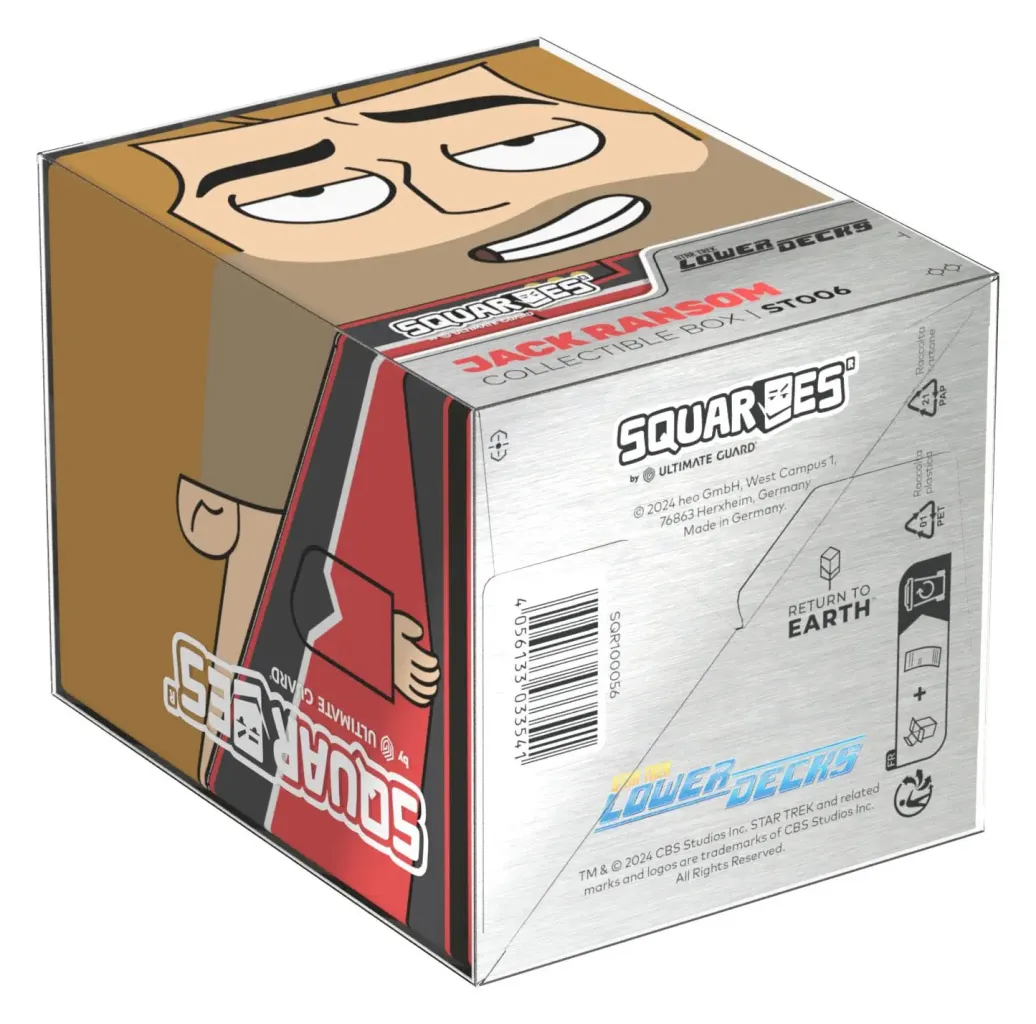 Sammelbare Box zur Aufbewahrung von TCG-Decks, Tabletop-Zubehör und/oder Sammlerstücken. Der Jack Ransom Squaroe aus der Star Trek: Lower Decks™-Edition bietet als Deck-Box benutzt Platz für bis zu 100 Spielkarten in doppelter Schutzhülle. Squaroes werden aus 78% erneuerbaren Rohstoffen hergestellt und passen perfekt in das separat erhältliche Collectors Case. . .