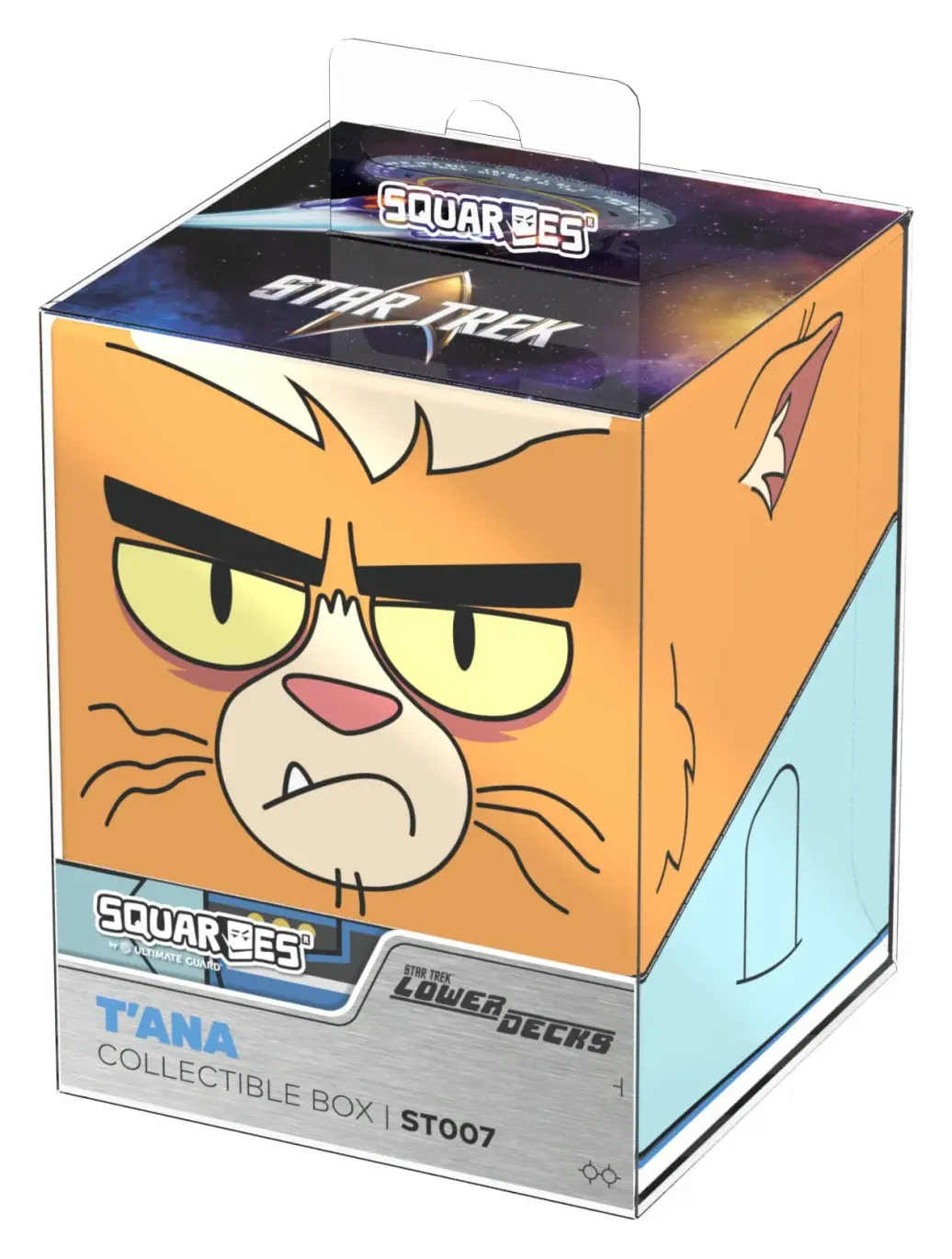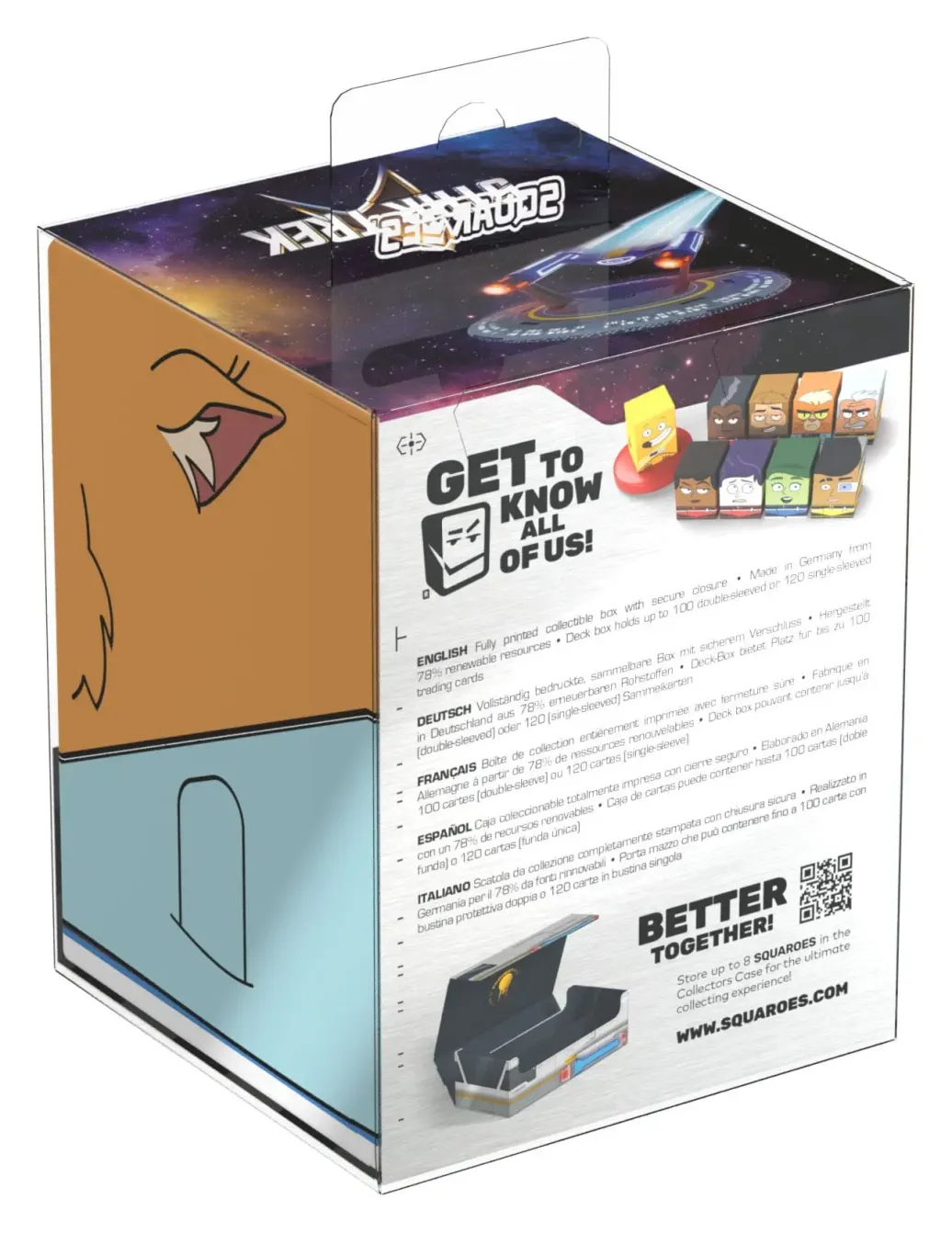 Sammelbare Box zur Aufbewahrung von TCG-Decks, Tabletop-Zubehör und/oder Sammlerstücken. Der T'Ana Squaroe aus der Star Trek: Lower Decks™-Edition bietet als Deck-Box benutzt Platz für bis zu 100 Spielkarten in doppelter Schutzhülle. Squaroes werden aus 78% erneuerbaren Rohstoffen hergestellt und passen perfekt in das separat erhältliche Collectors Case.