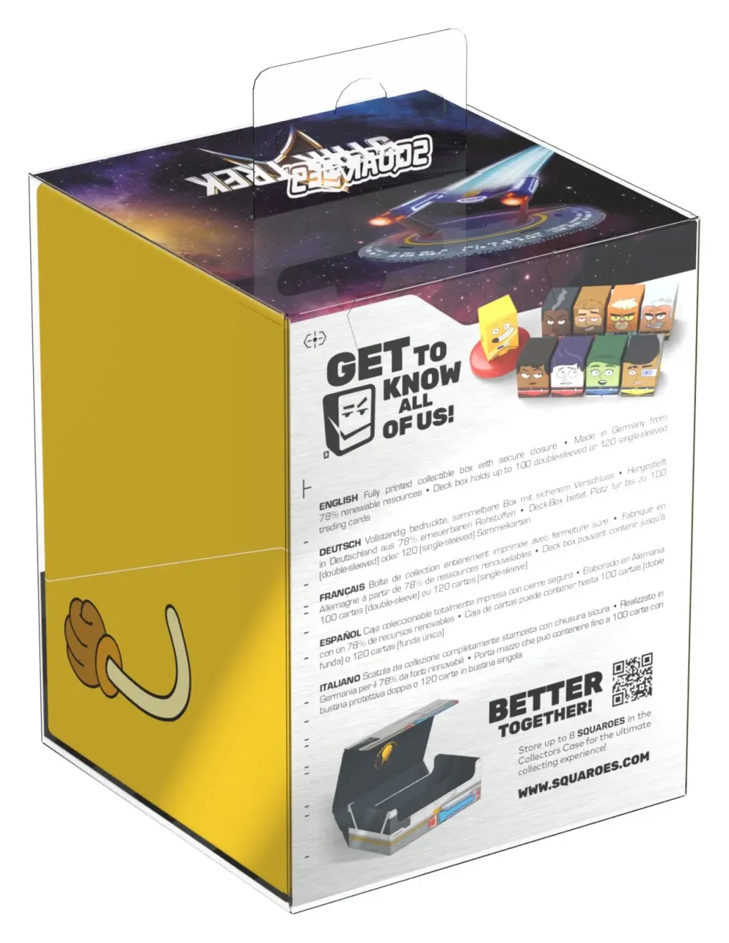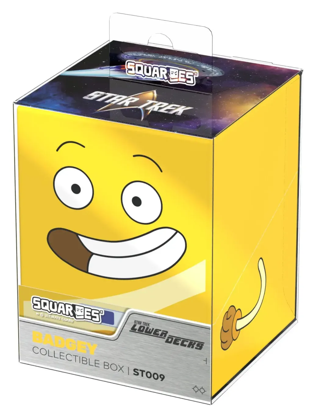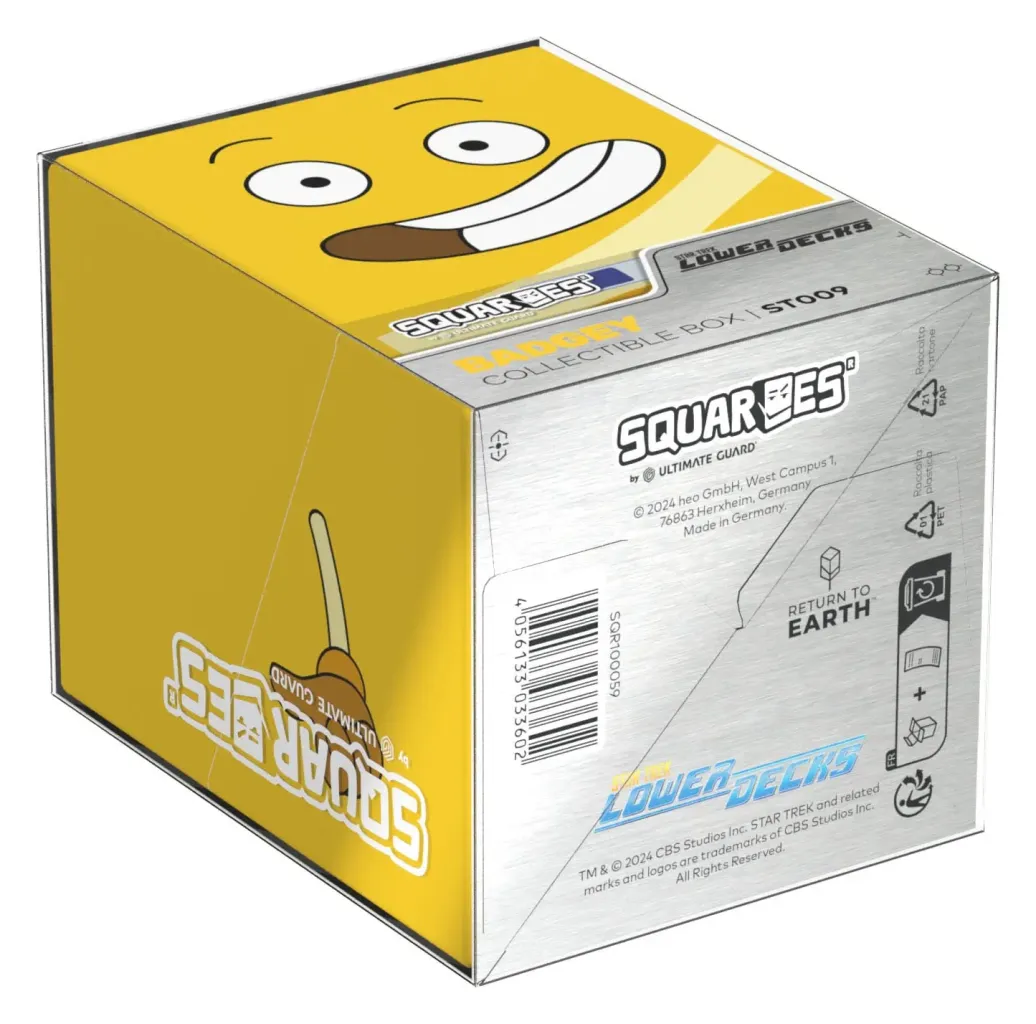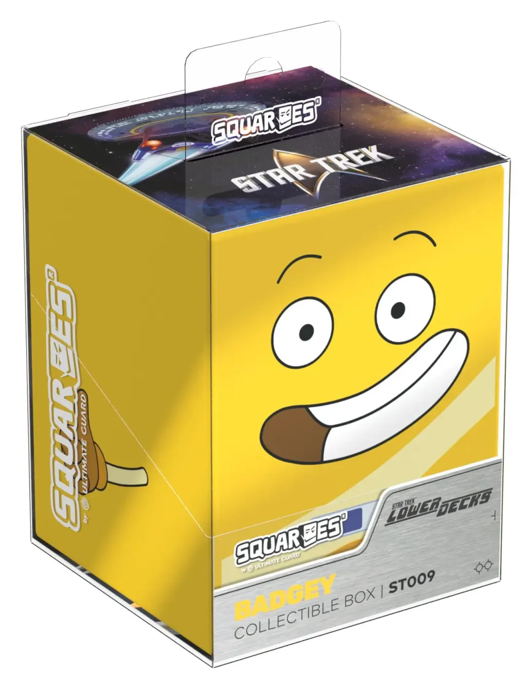 Sammelbare Box zur Aufbewahrung von TCG-Decks, Tabletop-Zubehör und/oder Sammlerstücken. Der Badgey Squaroe aus der Star Trek: Lower Decks™-Edition bietet als Deck-Box benutzt Platz für bis zu 100 Spielkarten in doppelter Schutzhülle. Squaroes werden aus 78% erneuerbaren Rohstoffen hergestellt und passen perfekt in das separat erhältliche Collectors Case.