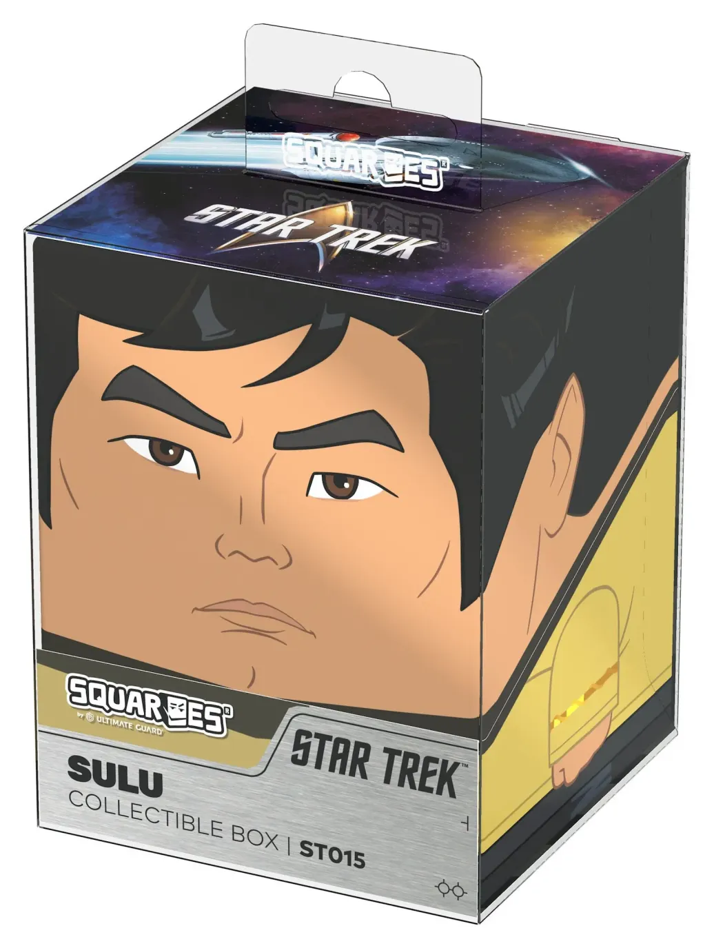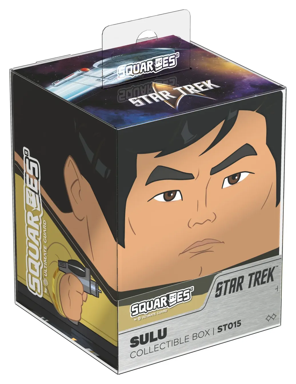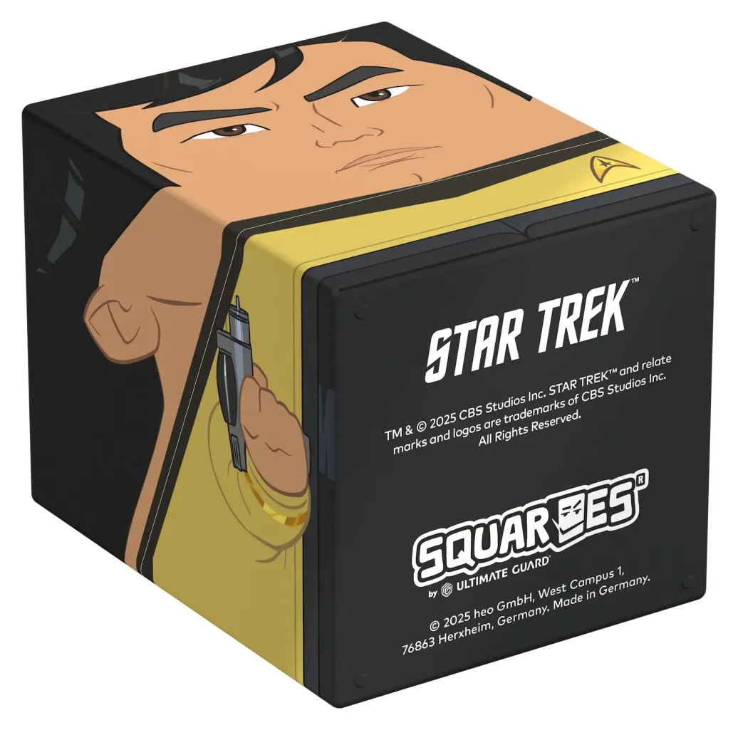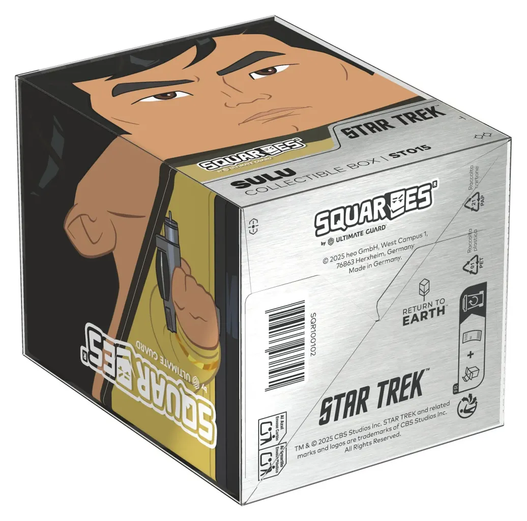 Sammelbare Box zur Aufbewahrung von TCG-Decks, Tabletop-Zubehör und/oder Sammlerstücken. Der Sulu Squaroe aus der Star Trek: The Original Series-Edition bietet als Deck-Box benutzt Platz für bis zu 100 Spielkarten in doppelter Schutzhülle. Squaroes werden aus 78% erneuerbaren Rohstoffen hergestellt und passen perfekt in das separat erhältliche Collectors Case.