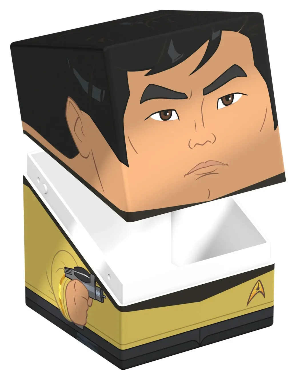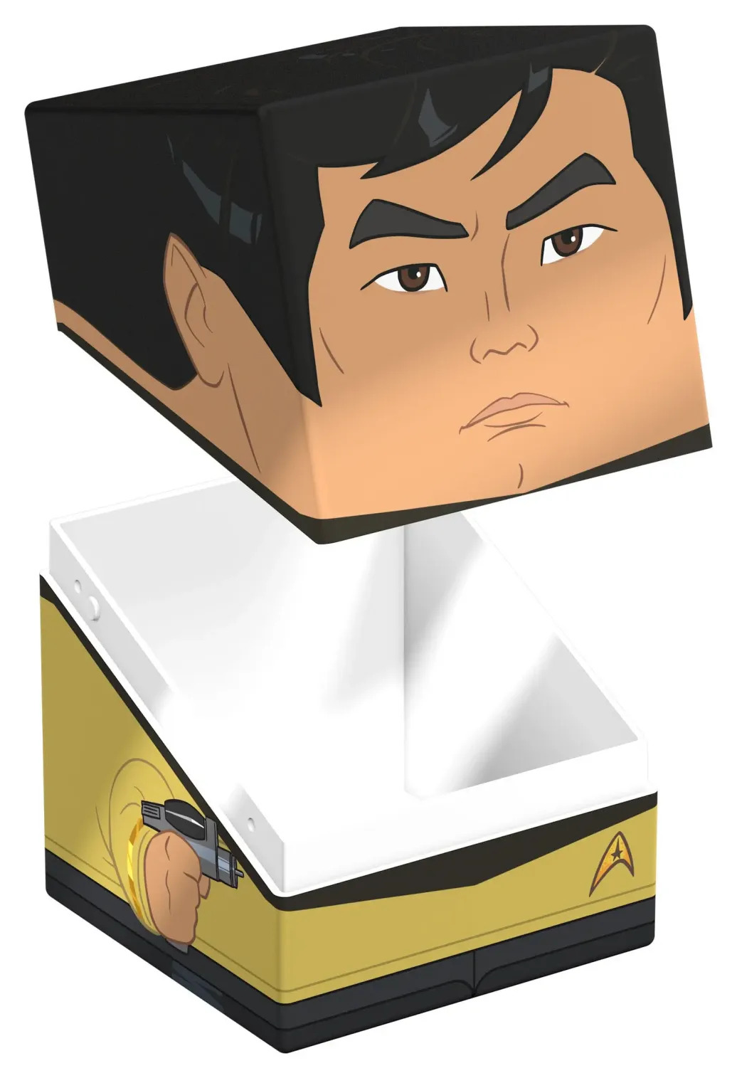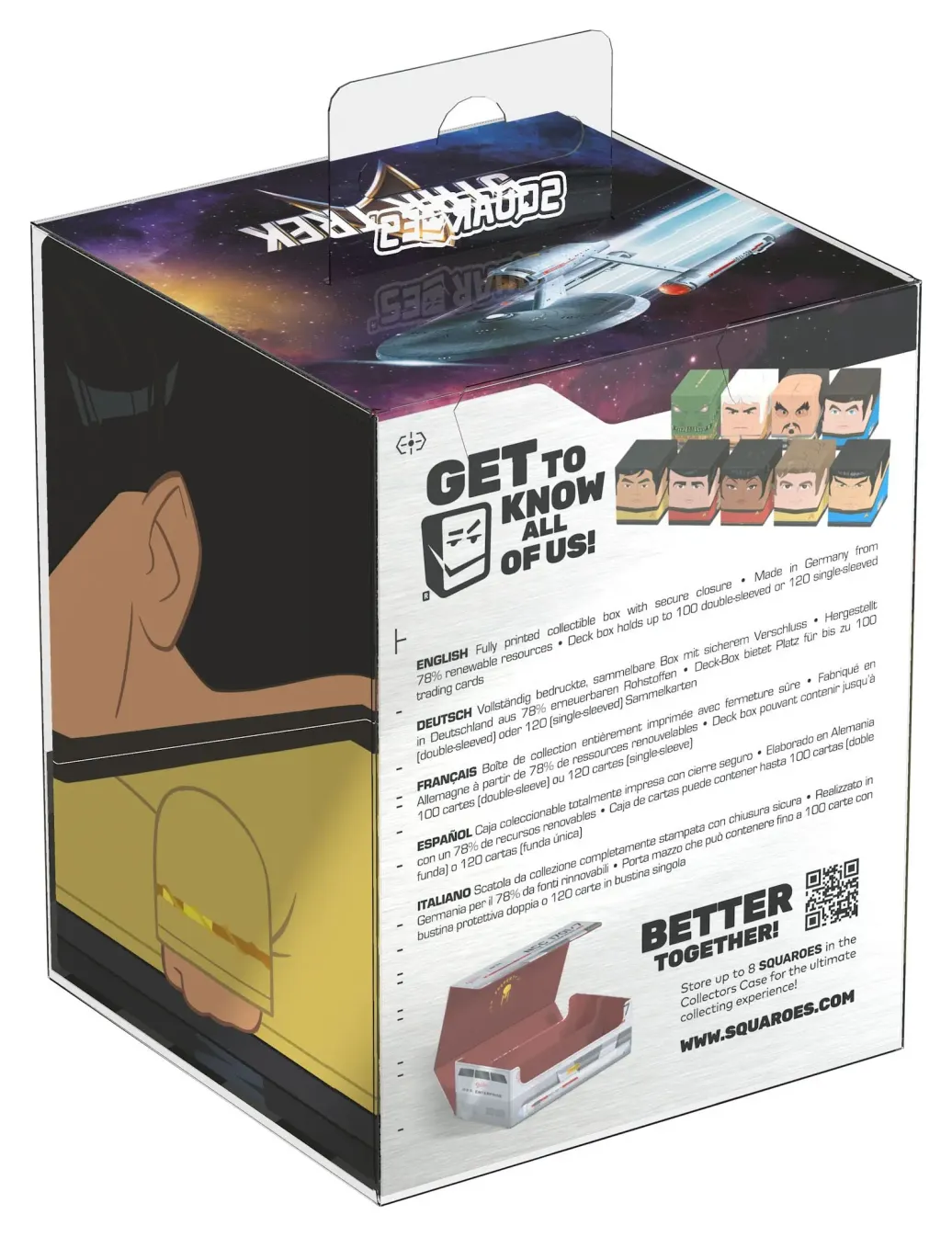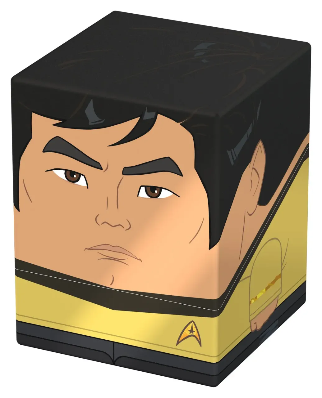 Sammelbare Box zur Aufbewahrung von TCG-Decks, Tabletop-Zubehör und/oder Sammlerstücken. Der Sulu Squaroe aus der Star Trek: The Original Series-Edition bietet als Deck-Box benutzt Platz für bis zu 100 Spielkarten in doppelter Schutzhülle. Squaroes werden aus 78% erneuerbaren Rohstoffen hergestellt und passen perfekt in das separat erhältliche Collectors Case.