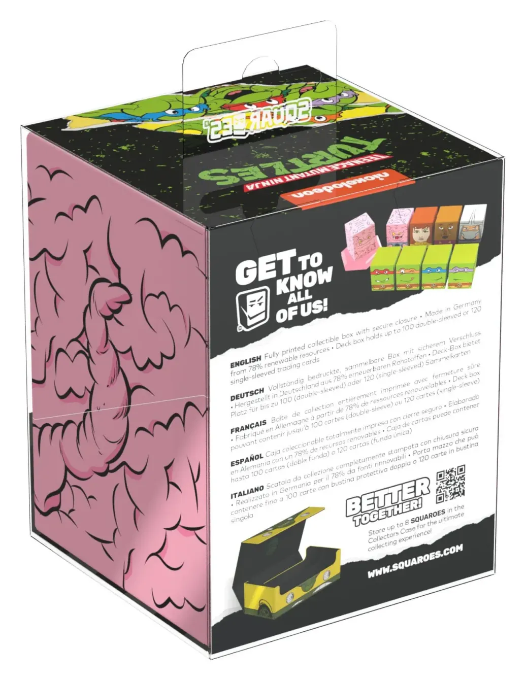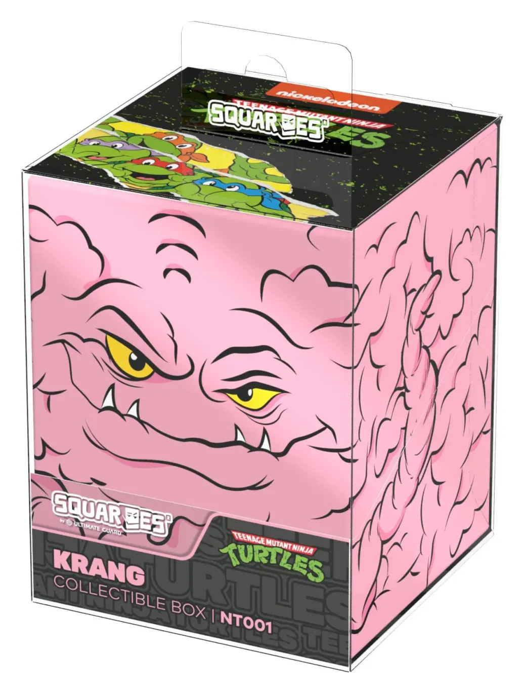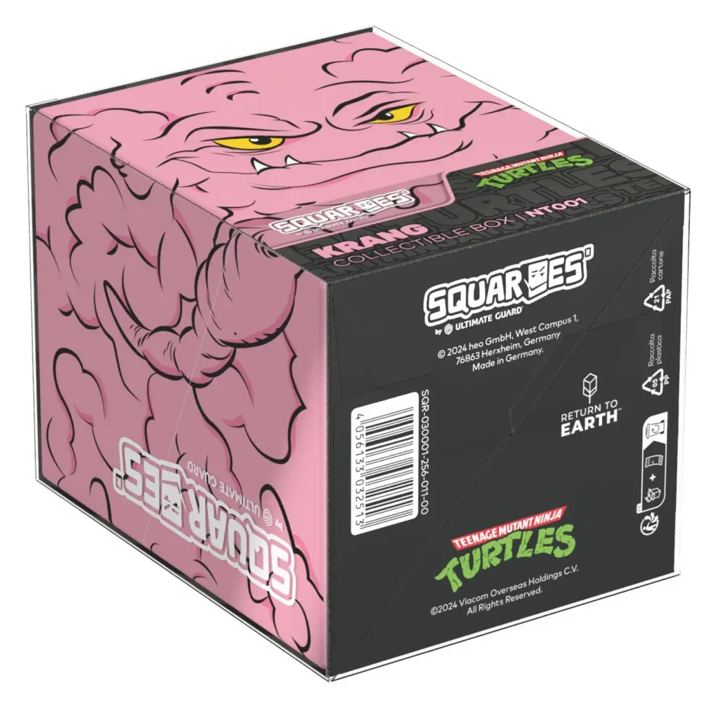 Sammelbare Box zur Aufbewahrung von TCG-Decks, Tabletop-Zubehör und/oder Sammlerstücken. Der Krang Squaroe aus der Teenage Mutant Ninja Turtles™-Edition bietet als Deck-Box benutzt Platz für bis zu 100 Spielkarten in doppelter Schutzhülle. Squaroes werden aus 78% erneuerbaren Rohstoffen hergestellt und passen perfekt in das separat erhältliche Collectors Case.