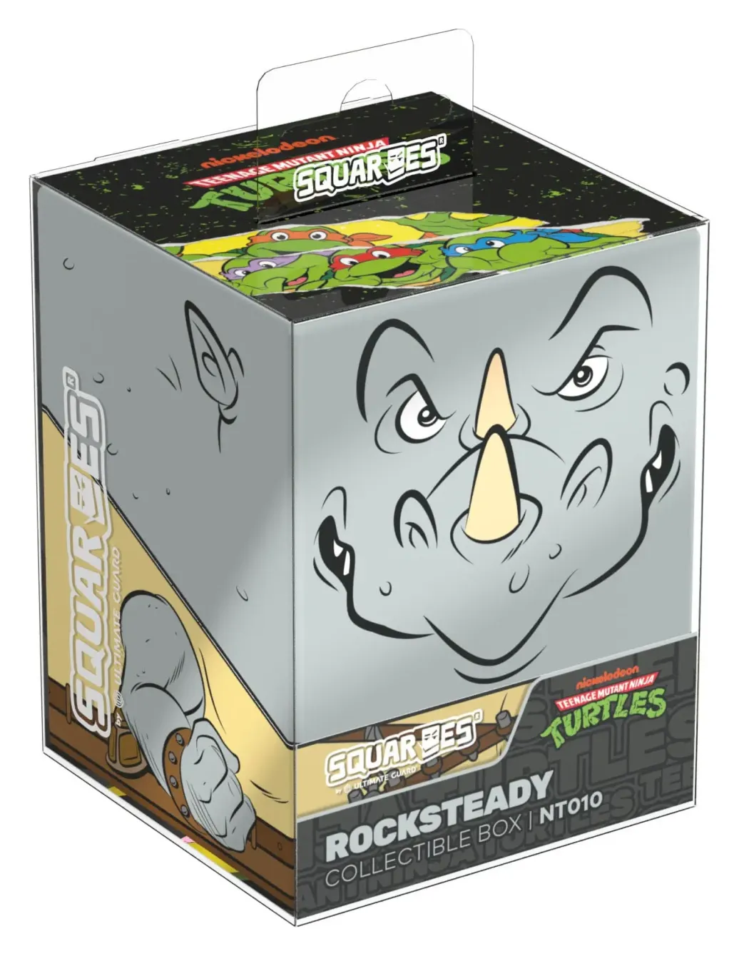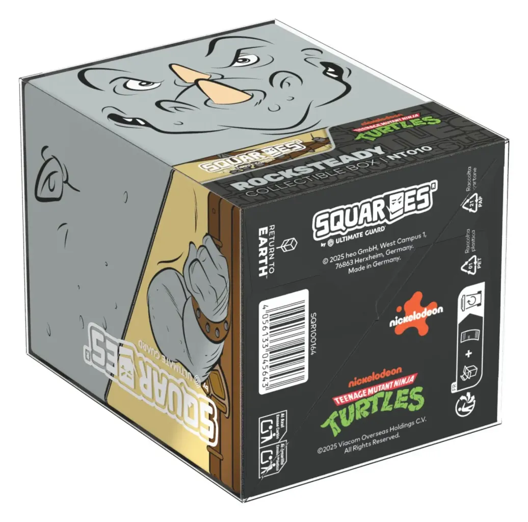 Sammelbare Box zur Aufbewahrung von TCG-Decks, Tabletop-Zubehör und/oder Sammlerstücken. Der Rocksteady Squaroe aus der Teenage Mutant Ninja Turtles™-Edition bietet als Deck-Box benutzt Platz für bis zu 100 Spielkarten in doppelter Schutzhülle. Squaroes werden aus 78% erneuerbaren Rohstoffen hergestellt und passen perfekt in das separat erhältliche Collectors Case.