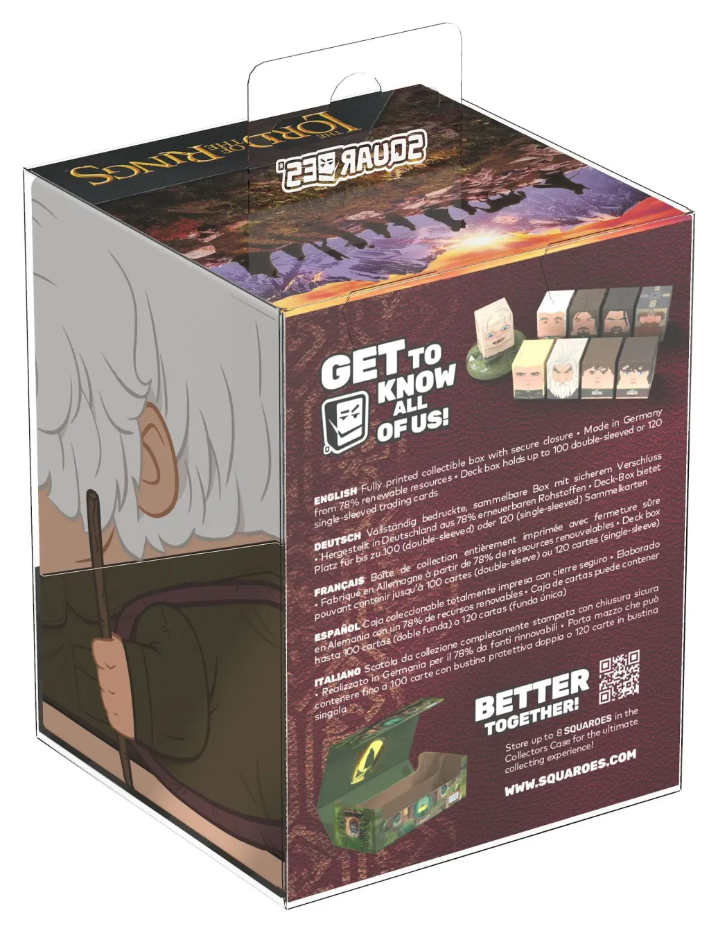 Sammelbare Box zur Aufbewahrung von TCG-Decks, Tabletop-Zubehör und/oder Sammlerstücken. Der Bilbo Baggins Squaroe aus der The Lord of the Rings-Edition bietet als Deck-Box benutzt Platz für bis zu 100 Spielkarten in doppelter Schutzhülle. Squaroes werden aus 78% erneuerbaren Rohstoffen hergestellt und passen perfekt in das separat erhältliche Collectors Case.