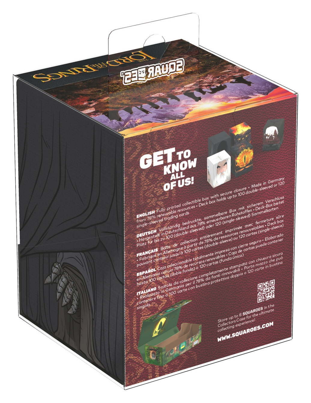 Vergesst nicht, eure The Lord of the Rings-Sammlung mit dem passenden "[DESIGN NAME]" Collectors Case zu vervollständigen - der perfekten Box zur Aufbewahrung von bis zu acht Squaroes!