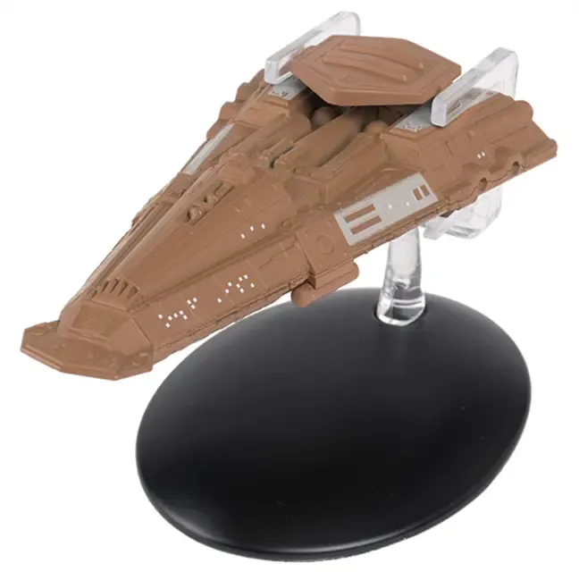 Eaglemoss "Star Trek - The Official Starships Collection" bringt dem geneigten Star Trek-Fan eine umfangreiche Sammlung von Raumschiffen aus allen Fernsehserien. Dieses detailreiche Bajoranischer Frachter Modell aus Metall und Kunststoff ist ca. 14 cm lang.