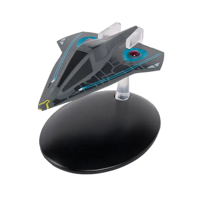 Eaglemoss "Star Trek - The Official Starships Collection" bringt dem geneigten Star Trek-Fan eine umfangreiche Sammlung von Raumschiffen aus allen Fernsehserien. Dieses detailreiche Föderationszeitschiff Aeon Modell aus Metall und Kunststoff ist ca. 14 cm lang.
