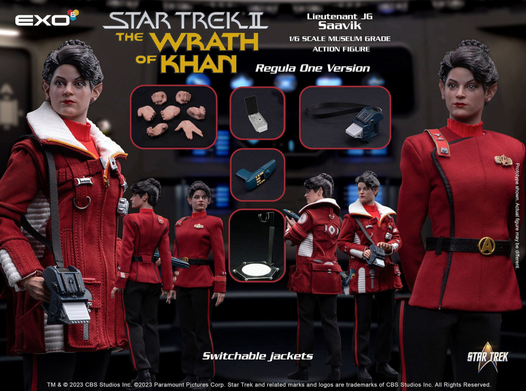 EXO-6 präsentiert diese großartige Actionfigur im Maßstab 1/6 aus dem zweiten Star Trek Kinofilm. Sie ist ca. 28 cm groß und kommt mit zahlreichen Austausch- und Zubehörteilen sowie Figurenständer.