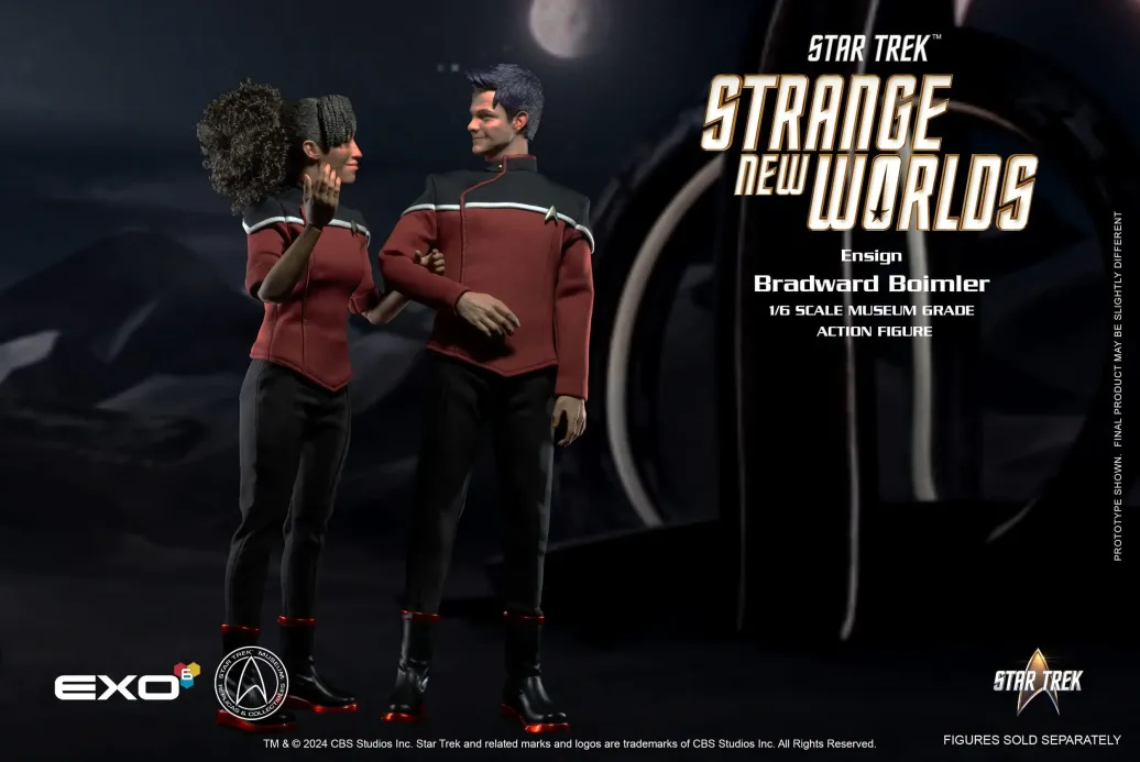EXO-6 präsentiert diese großartige Actionfigur im Maßstab 1/6 aus der Serie Star Trek: Fremde neue Welten. Sie ist ca. 30 cm groß und kommt mit zahlreichen Austausch- und Zubehörteilen sowie Figurenständer.
