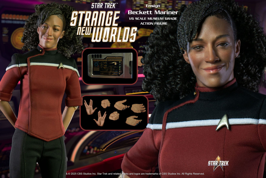 EXO-6 präsentiert diese großartige Actionfigur im Maßstab 1/6 aus der Serie Star Trek: Fremde neue Welten. Sie ist ca. 30 cm groß und kommt mit zahlreichen Austausch- und Zubehörteilen sowie Figurenständer.