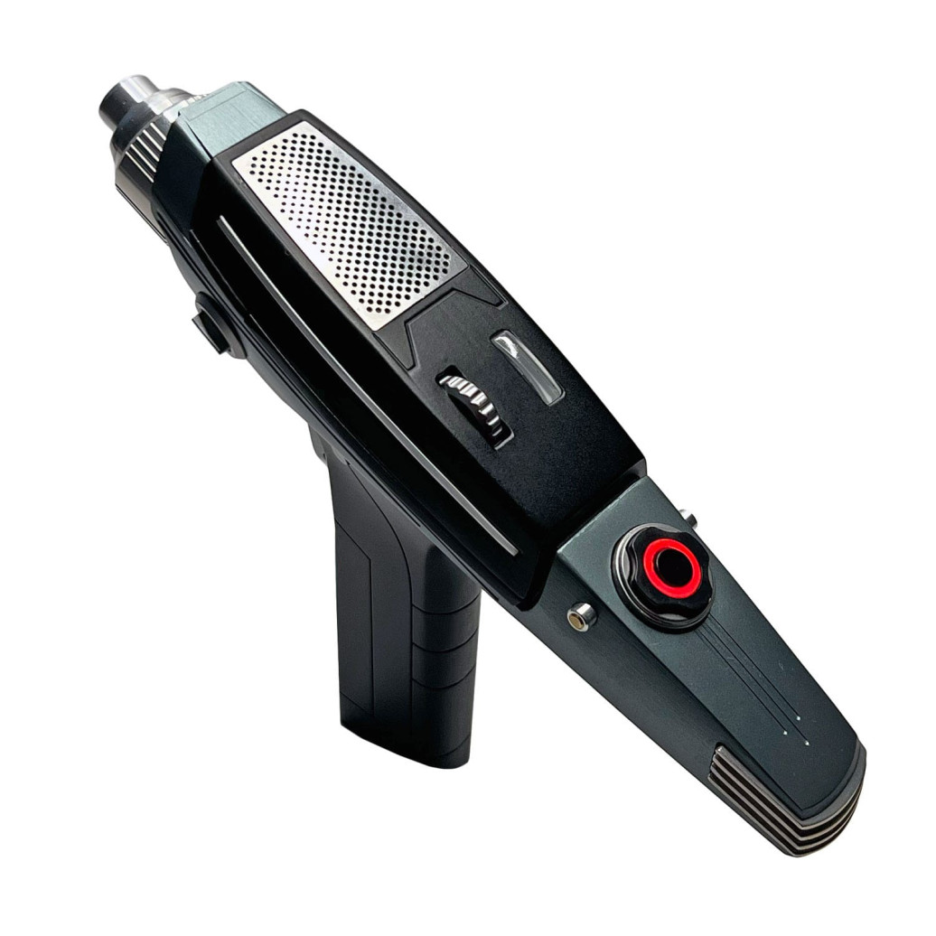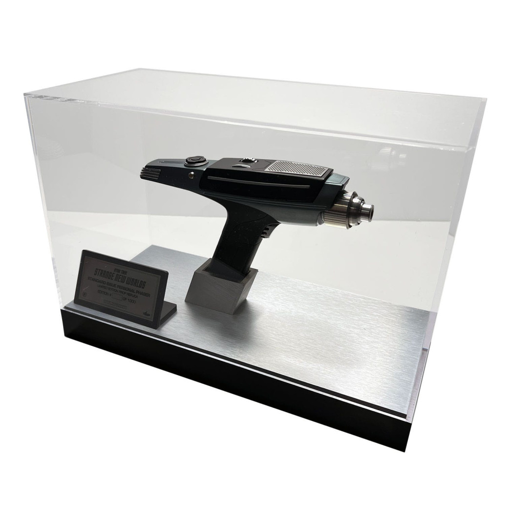 Star Trek: Strange New Worlds befand sich zu der Zeit, als unsere Phaser-Replik entworfen wurde, noch in der Produktion der ersten Staffeln. Die auf dem Bildschirm verwendeten Originalrequisiten verfügten über Funktionen, die damals nur angedeutet oder nicht angesprochen wurden. In Zusammenarbeit mit dem Produktionsteam von Star Trek: Strange New Worlds waren wir jedoch in der Lage, zusätzliche Features und Funktionen zu extrapolieren und vollständig zu realisieren. Diese Replik enthält einen abnehmbaren Phaser Typ 1, einen verstellbaren Emitter und andere, bisher noch nicht gesehene Funktionen, wie z. B. Überladungssequenzen, die vom Produktionsteam genehmigt wurden und in Zukunft zum Standard werden könnten.