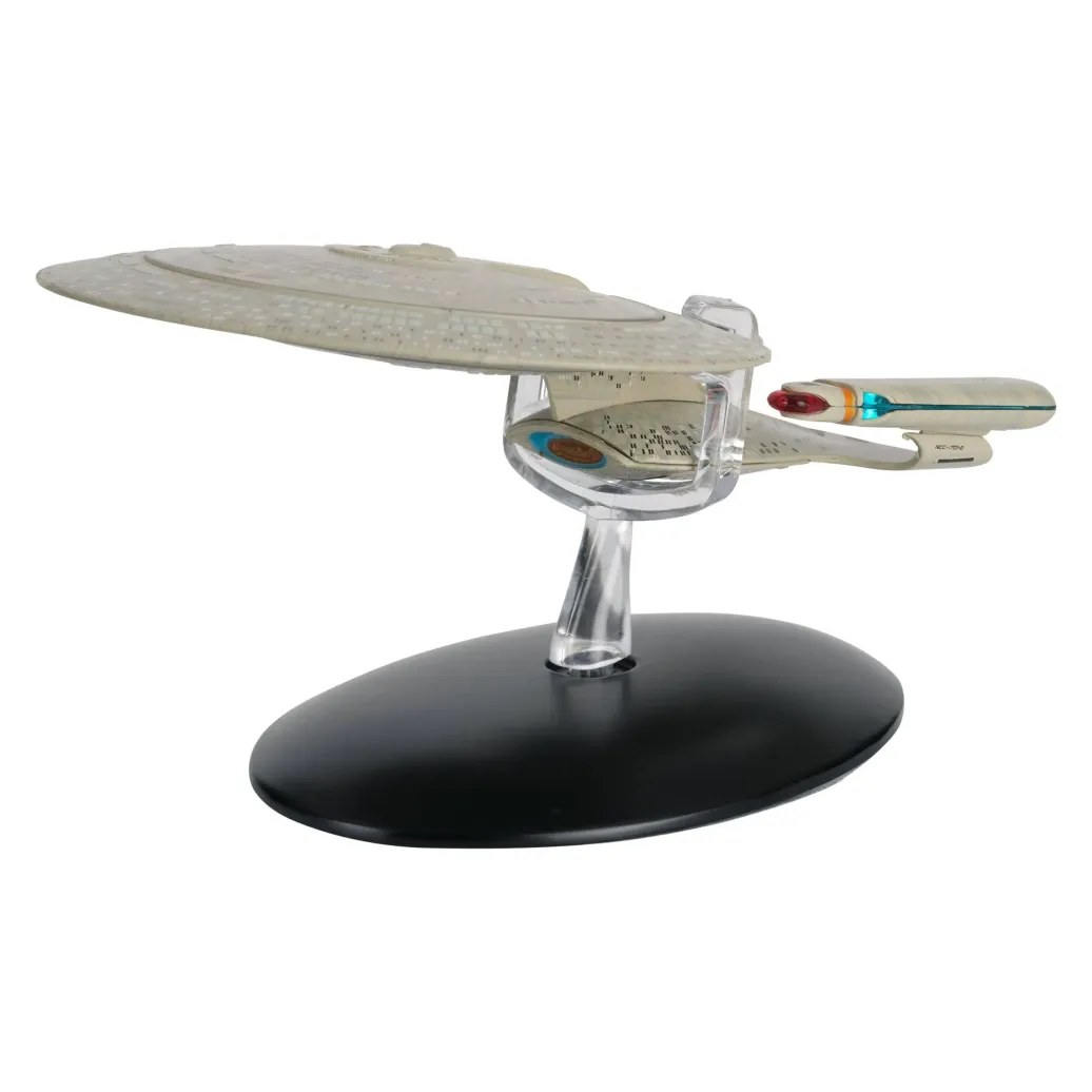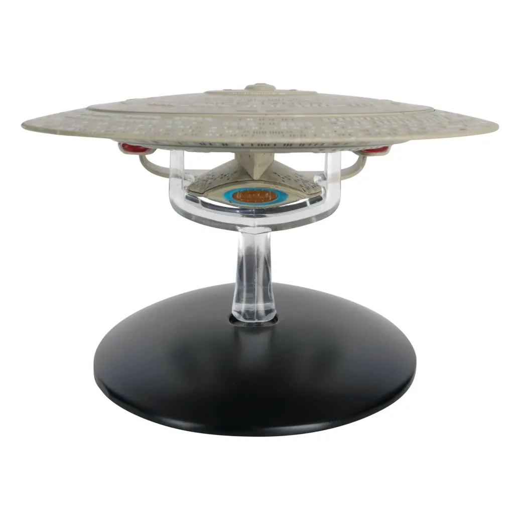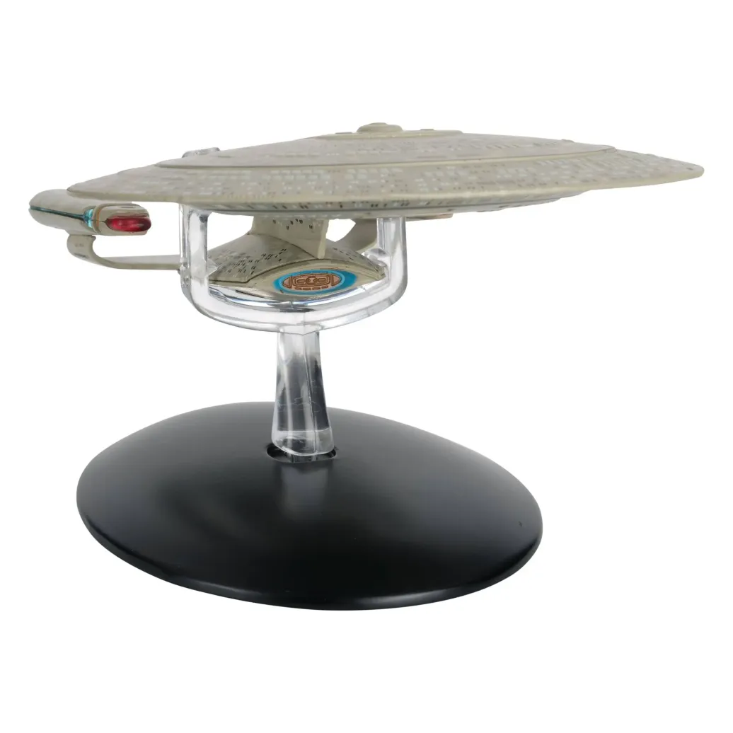 Das elegante Raumschiffmodell ist ungefähr 16 cm lang und weist eine dritte Warpgondel auf. Jedes Exemplar ist individuell nummeriert und wird mit einem praktischen Display-Sockel geliefert.