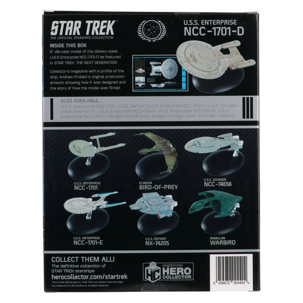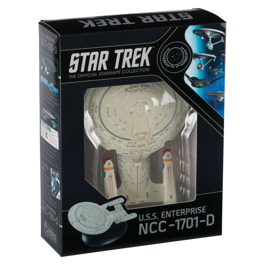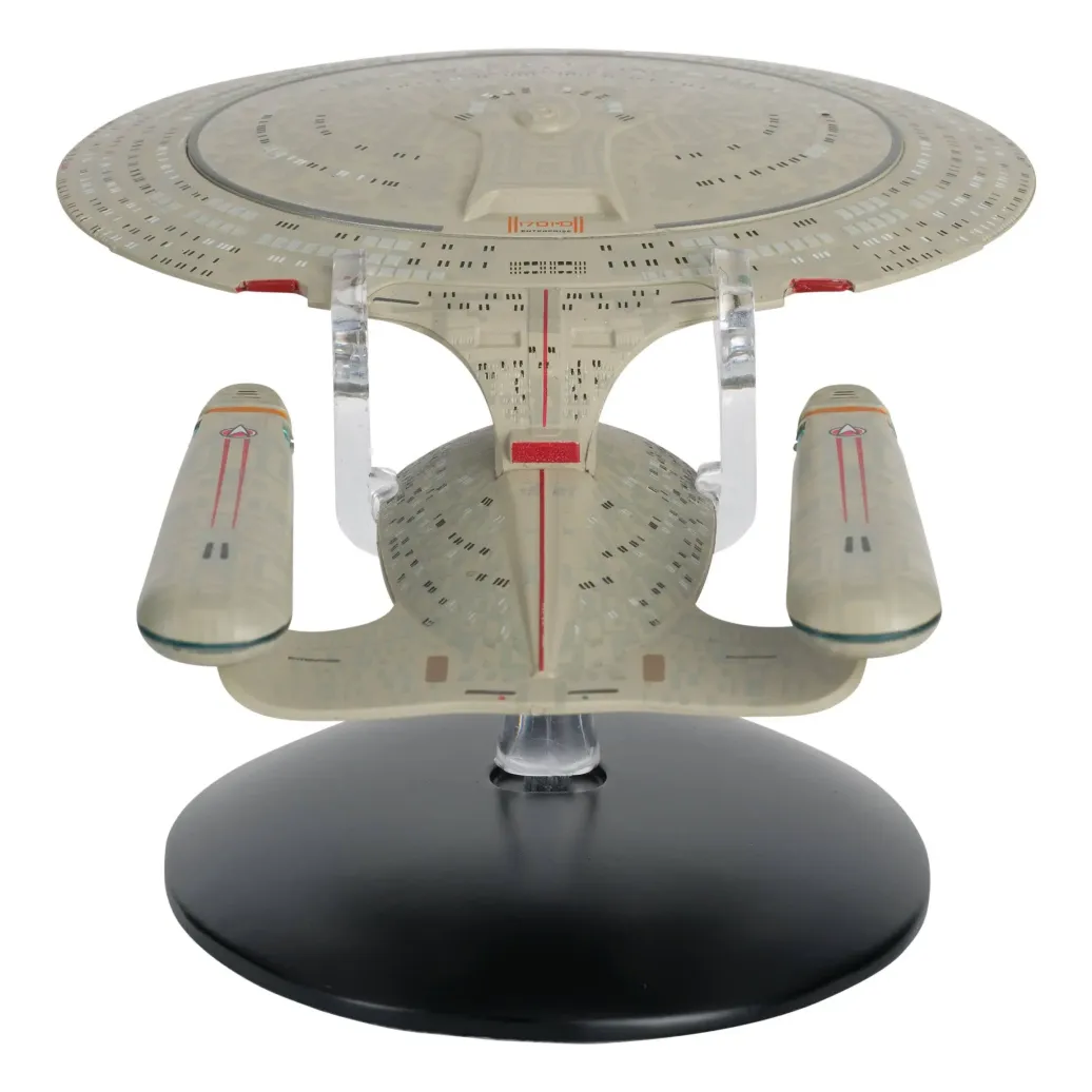 Das elegante Raumschiffmodell ist ungefähr 16 cm lang und weist eine dritte Warpgondel auf. Jedes Exemplar ist individuell nummeriert und wird mit einem praktischen Display-Sockel geliefert.