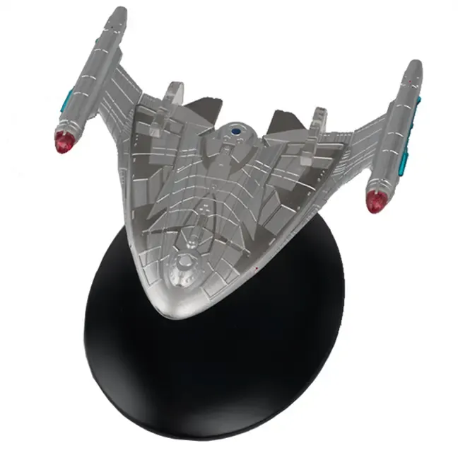 Eaglemoss "Star Trek - The Official Starships Collection" bringt dem geneigten Star Trek-Fan eine umfangreiche Sammlung von Raumschiffen aus allen Fernsehserien. Dieses detailreiche Warp-Delta-Raumschiff Modell aus Metall und Kunststoff ist ca. 14 cm lang.