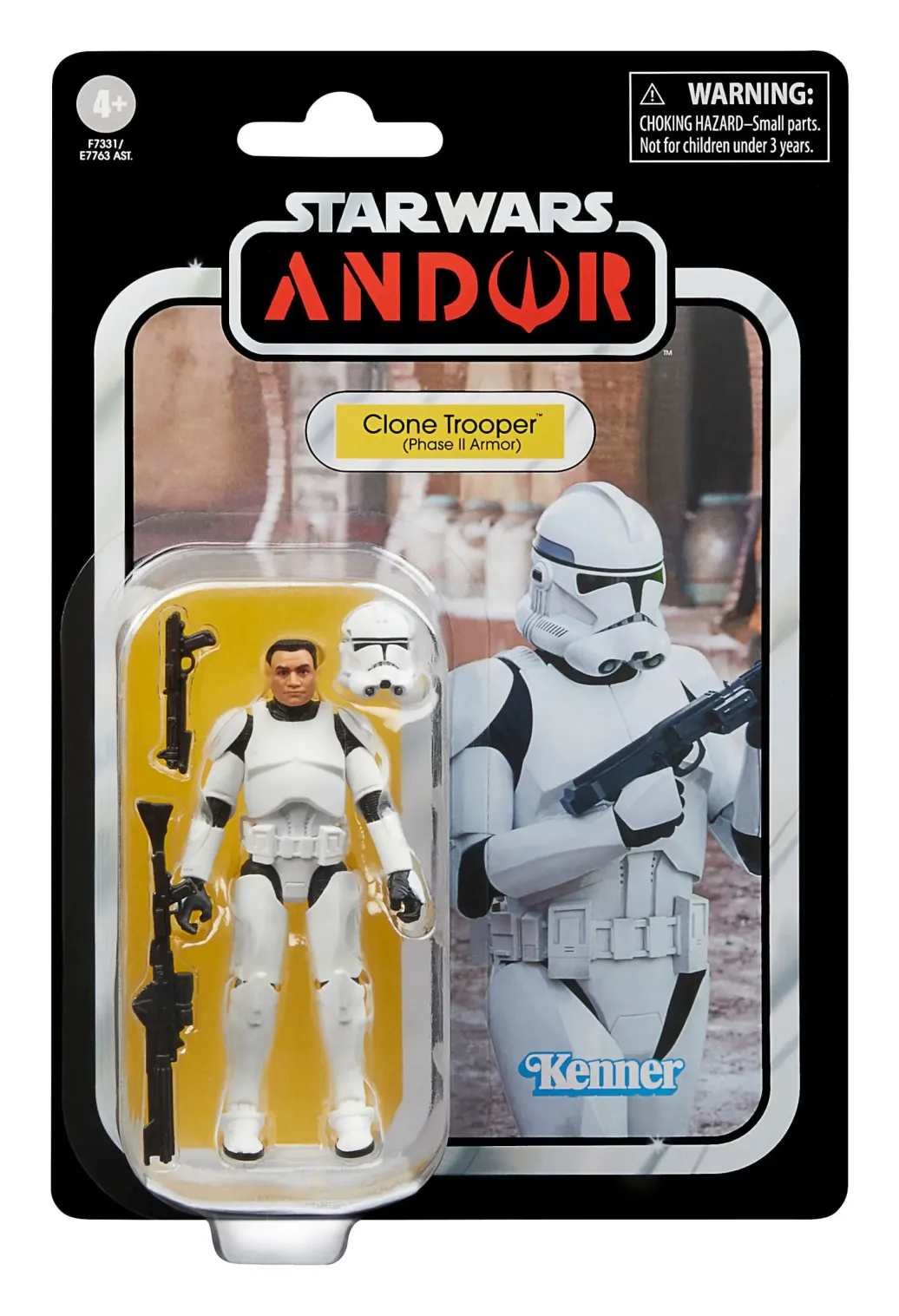 Diese 9,5 cm große durch die Live-Action-Serie Star Wars: Andor auf Disney+ inspirierte Star Wars The Vintage Collection Klonkrieger Phase II Sammelfigur mit realistischen Details sowie mehreren Bewegungspunkten ist ein tolles Geschenk für Star Wars Fans und Sammler.