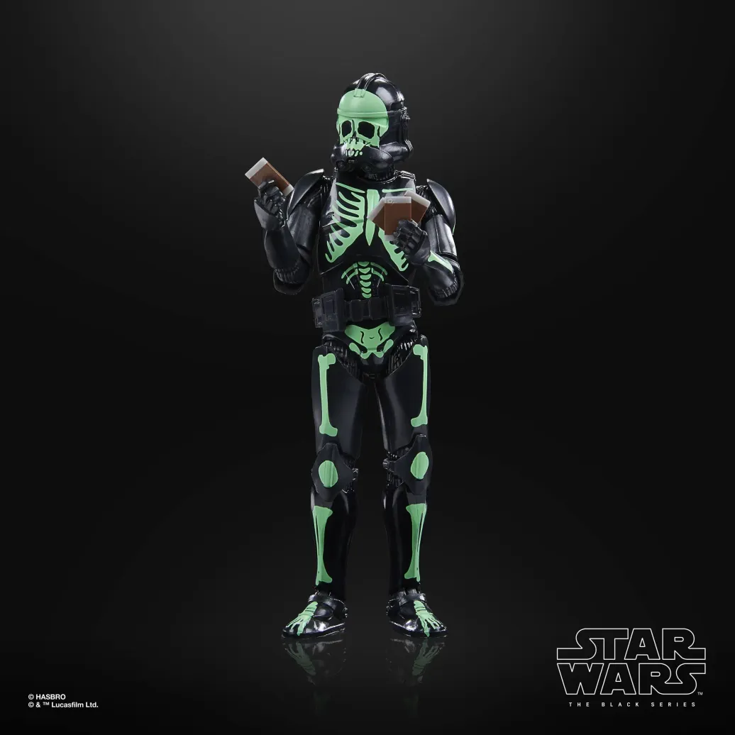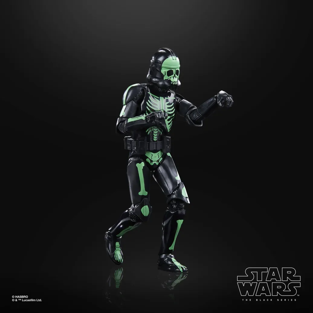 Die 15 cm große Klonkrieger Figur (Halloween Edition) aus der Black Series verfügt über Premium Details, mehrere Bewegungspunkte und ein spezielles Halloween-Design.