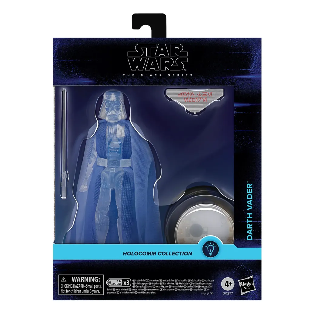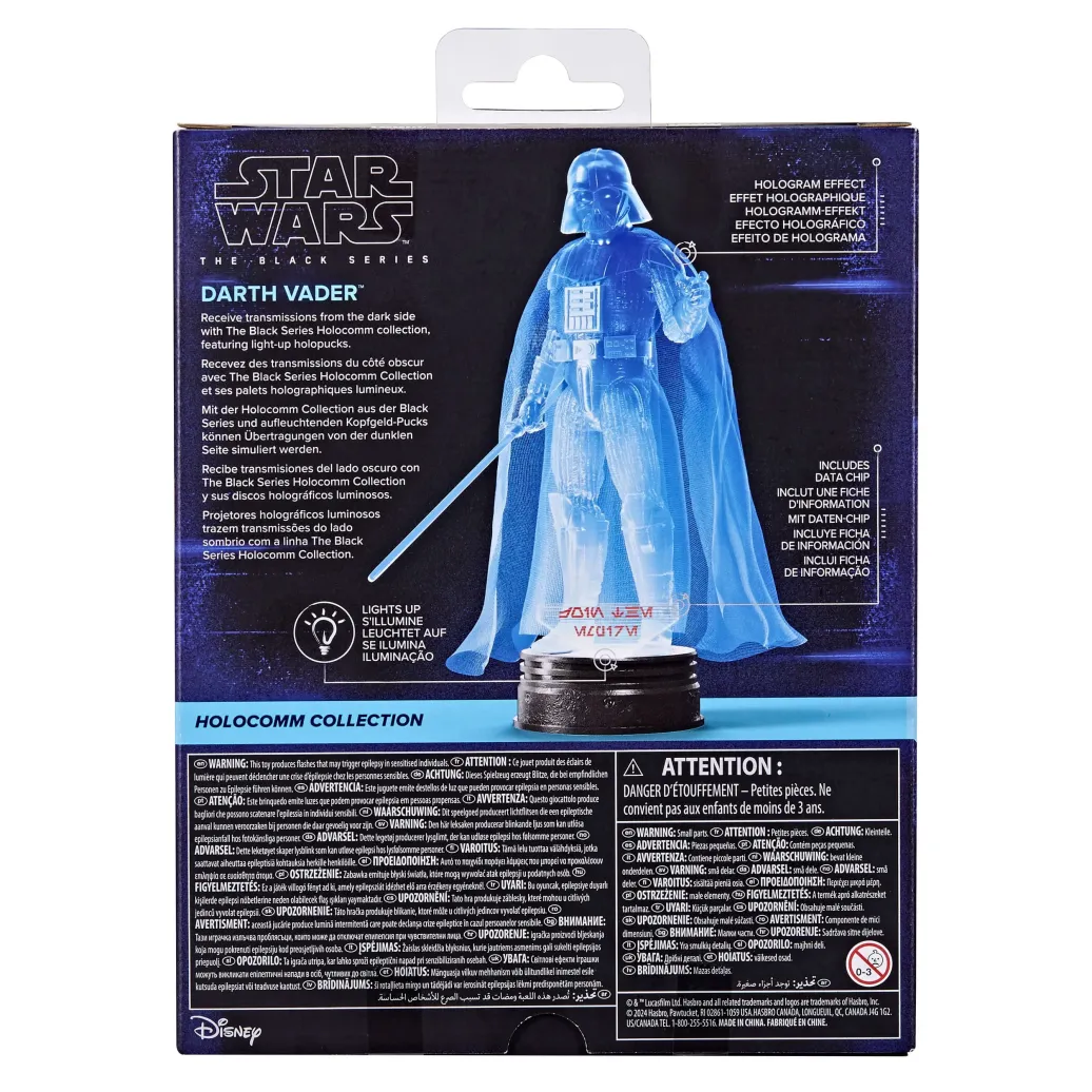 Star Wars The Black Series umfasst Sammelfiguren (in einer Figuren-Skala von 15 cm), Fahrzeuge und Rollenspielartikel zur über 40-jährigen Geschichte der Star Wars Galaxis. Die Star Wars Action-Figur ist detailgetreu, sodass sie einer einzigartigen Hologramm-Version von Darth Vader gleicht und verfügt über ein Premium-Design und mehrere Bewegungspunkte. Außerdem kommt jede Figur aus der The Black Series Holocomm Collection mit einem aufleuchtenden Kopfgeld-Puck zum Präsentieren! (Zusätzliche Produkte sind jeweils separat erhältlich. Je nach Verfügbarkeit.)