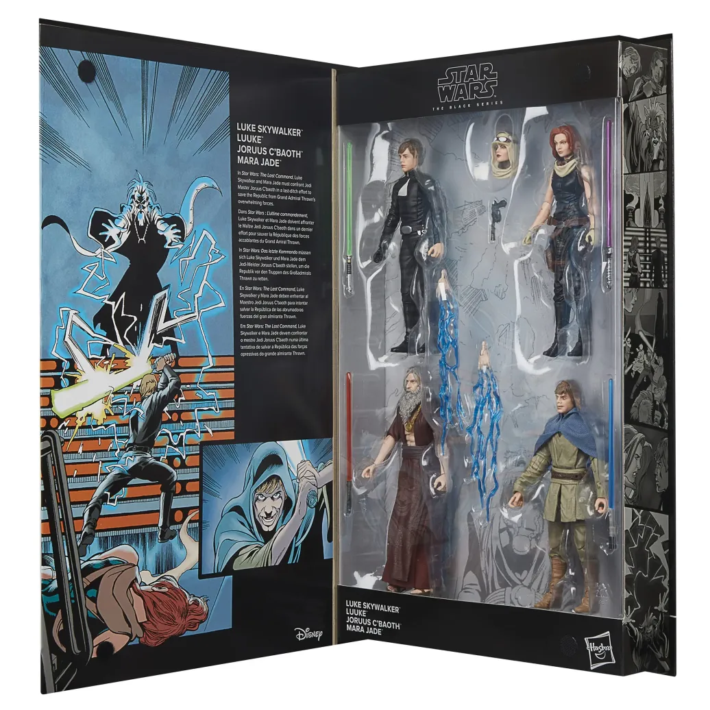 Star Wars The Black Series umfasst Action-Figuren in einer Skala von 15 cm sowie Fahrzeuge und Rollenspielartikel zur über 40-jährigen Geschichte der Star Wars Galaxis. Hiermit können Fans galaktische Szenen im Stil der Star Wars Comics, Filme und Serien erschaffen. Dieses Star Wars Action-Figurenset kommt im detailnahen Look von Luke Skywalker, Luuke, Joruus C'baoth und Mara Jade aus den Comics Star Wars: Das letzte Kommando. Die Black Series begeistert mit raffinierten Features und fein gearbeiteten Details und bietet die Qualität und Realitätstreue, die Star Wars Fans lieben. Möge die Macht mit euch sein!
