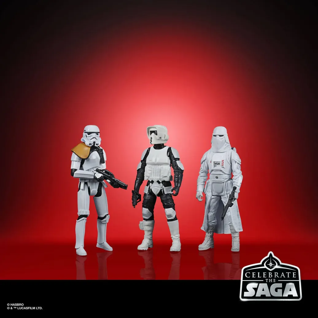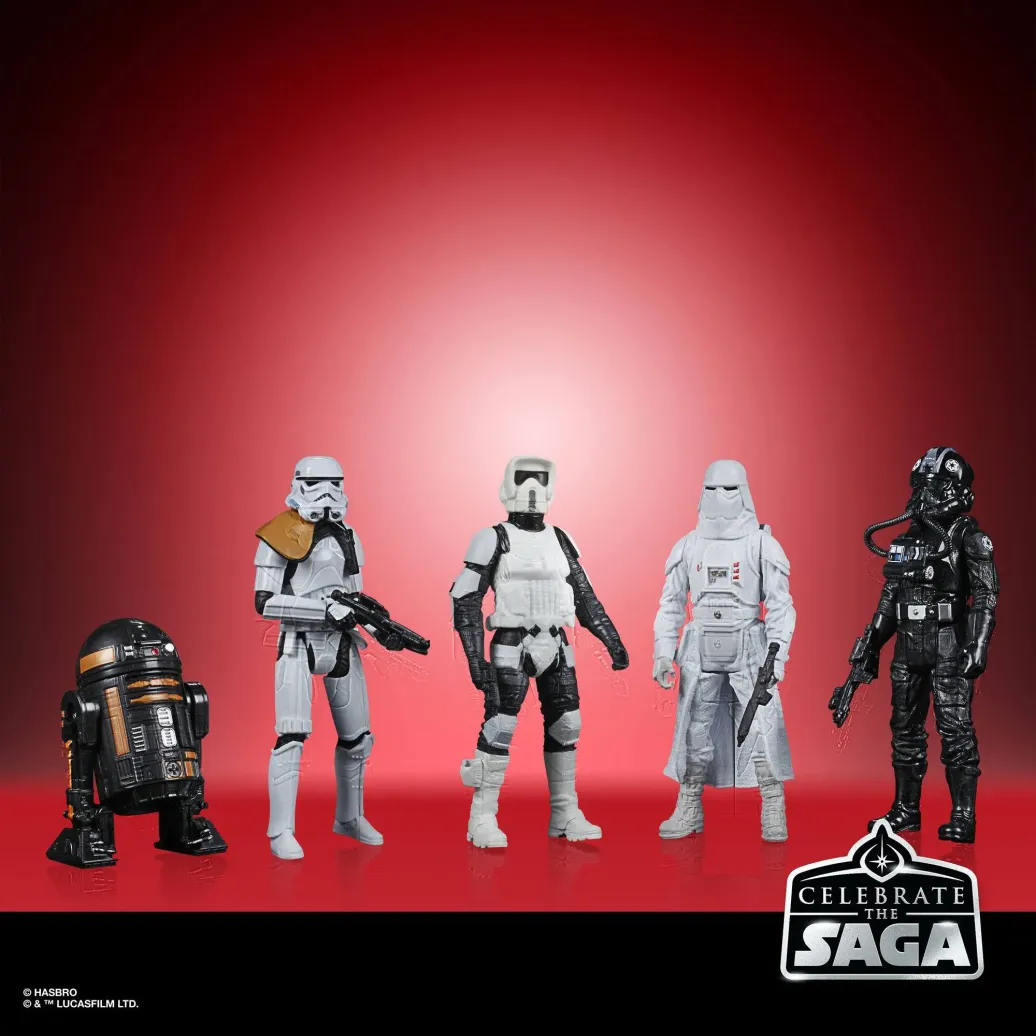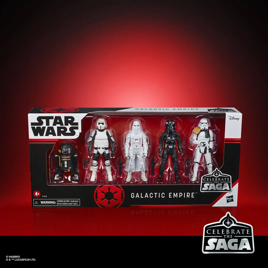 KULTIGE STAR WARS CHARAKTERE: Der Star Wars Celebrate the Saga Galaktisches Imperium-Pack kommt mit TIE-Jägerpilot, Snowtrooper, Stormtrooper Squad Anführer und Scout Trooper Action-Figuren mit mehreren Bewegungspunkten und einer R2-Q5 Figur