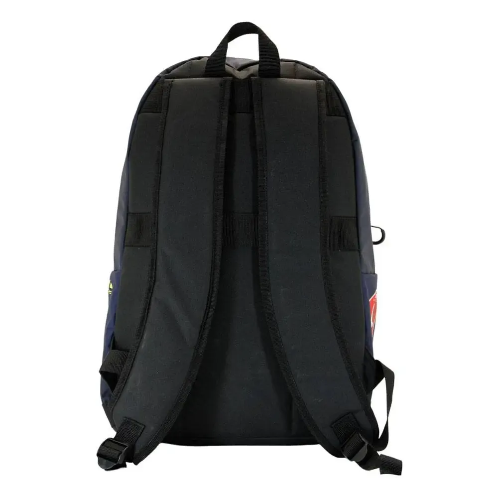 Rucksack mit drei Hauptfächern und zwei Netzseitentaschen. Innenfutter mit gepolstertem Fach für elektronische Geräte und kleiner Reißverschlusstasche. Flüssigkeitsabweisendes Gehäuse, das leichten Flecken und mäßigem Regen standhält.
