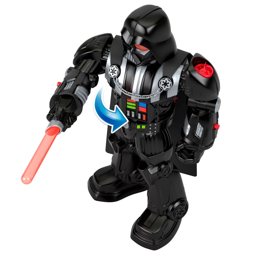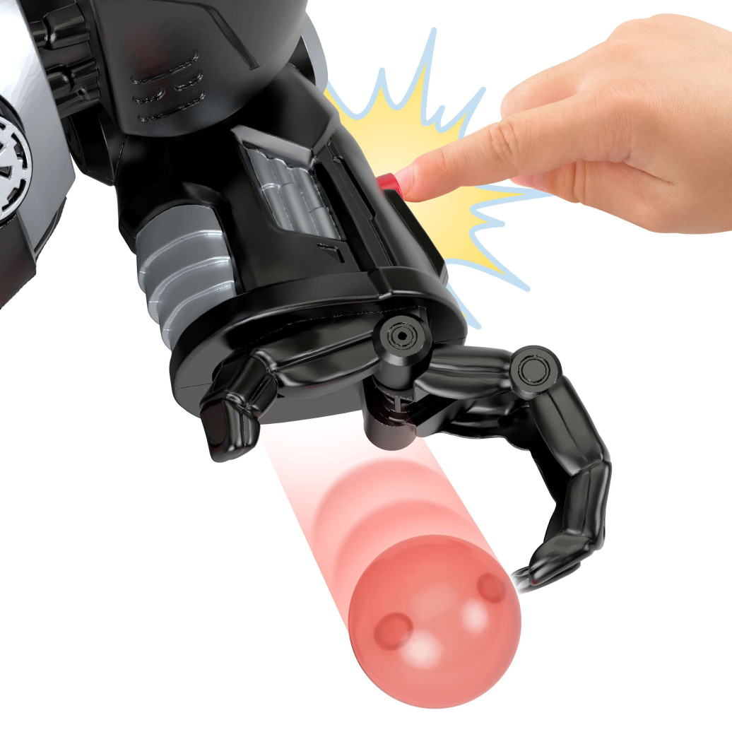 Junge Fans können mit dem Imaginext STAR WARS Darth Vader-Bot von Fisher-Price den berüchtigsten Militärkommandeur des galaktischen Imperiums zum Leben erwecken und tolle, actiongeladene Rollenspiele erleben. Bei einer Größe von über 60 cm bietet dieser interaktive Darth Vader-Roboter vom Kind gesteuerte Action, einschließlich eines ausklappbaren Projektilstarters, eines ausziehbaren Lichtschwerts und eines von der Macht inspirierten Ballstarters. Dazu kommen coole Lichter und für die Figuren typische Geräusche. Kinder werden es lieben, sich ihre eigenen, intergalaktischen Abenteuer mit diesem legendären STAR WARS-Bösewicht auszudenken. Enthält ein ca. 7 cm großes Sturmtruppler Die-Cast-Figurenschlüssel-Spielzeug und 7 Projektile für das Ausdenken von Geschichten. Abweichungen in Farbe und Gestaltung vorbehalten.