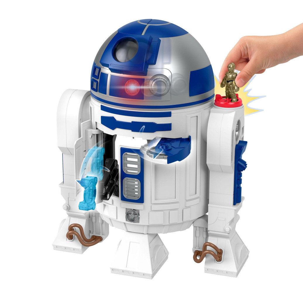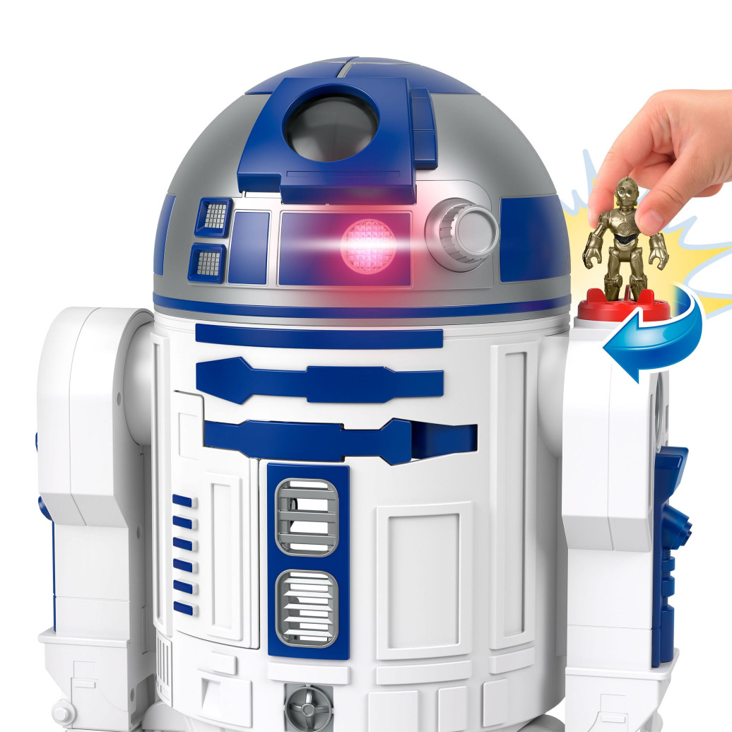 Junge Fans können mit dem Imaginext STAR WARS R2-D2-Spielzeug von Fisher-Price große galaktische Abenteuer erleben. Dieses interaktive Spielzeug ist über 44 cm groß und verfügt über coole Lichter und Geräusche, einen versteckten Projektilstarter, eine sich drehende, imaginäre Klinge und jede Menge toller, von Kindern gesteuerter Action. Wenn Kinder den Die-Cast-Figurenschlüssel C-3PO auf das Powerpad stellen und drehen, erwacht der kultige Droide zum Leben mit den vertrauten Geräuschen dieses Charakters und Kopfdreh-Action sowie weiteren coolen Überraschungen für Kinder. Abweichungen in Farbe und Gestaltung vorbehalten.