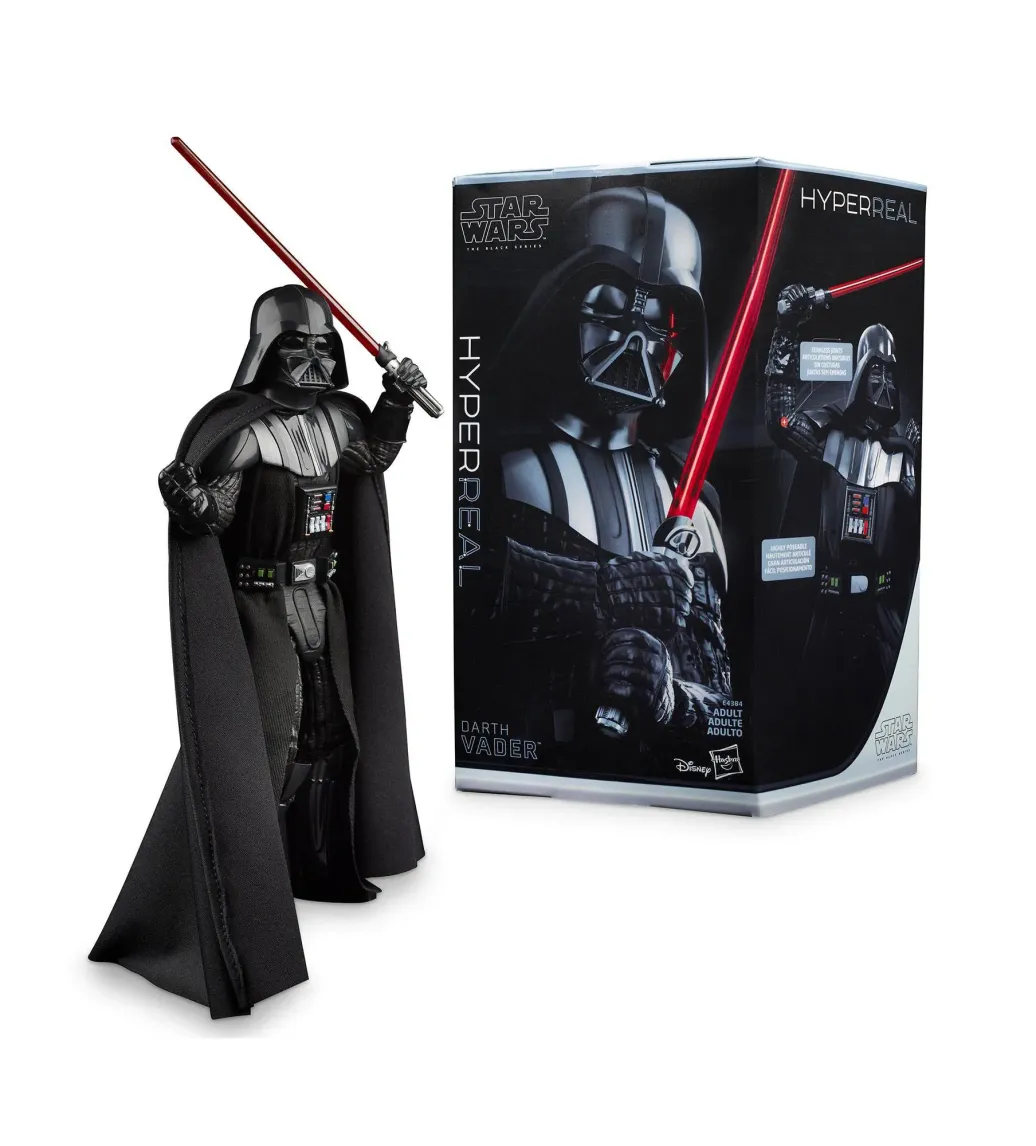Aus Hasbros Black Series Hyperreal-Reihe kommt diese detailreiche Darth Vader Actionfigur. Sie ist ca. 20 cm groß und wird mit weiterem Zubehör und austauschbaren Teilen in einer Fensterbox geliefert.