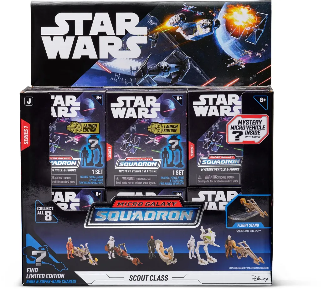 Von Star Wars kommt dieses Sortiment mit 12 detailreichen Fahrzeugen. Jedes Fahrzeug ist ca. 5 cm groß und wird mit einer Figur in einer Blisterverpackung geliefert.
