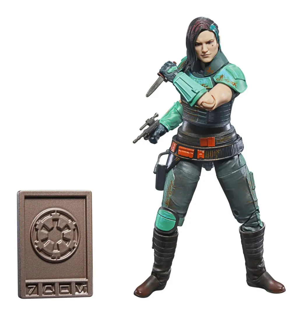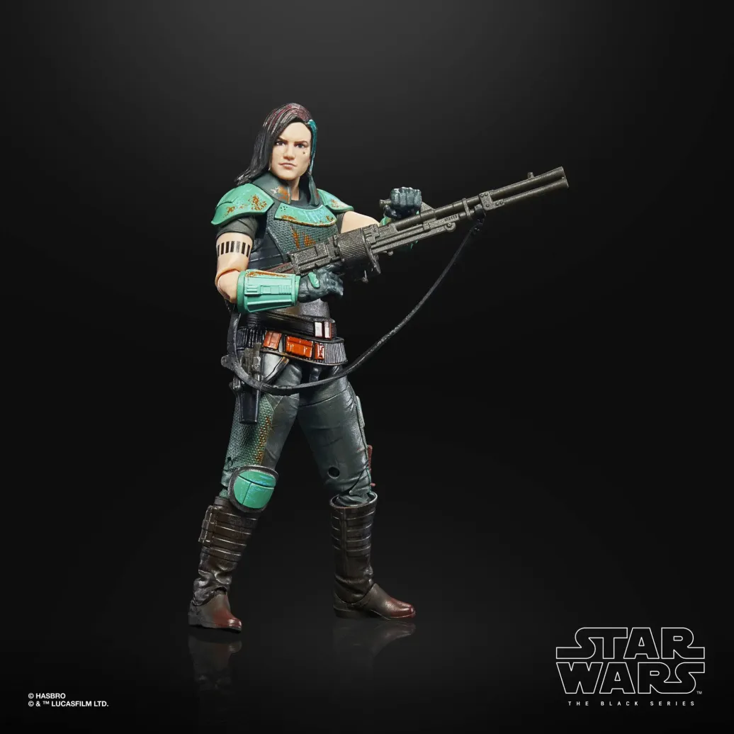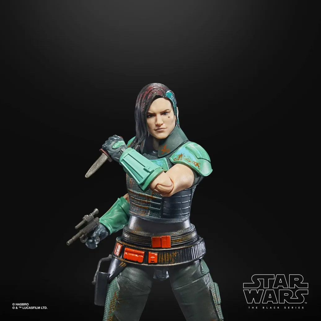 Die 15 cm große Cara Dune Action-Figur ist besonders detailgetreu, sodass sie dem Charakter aus The Mandalorian gleicht und hat Premium Details und mehrere Bewegungspunkte. Sie kommt in einer The Black Series Verpackung mit Vintage Design und verwittertem Look, die durch die stilisierten Bilder in den Credits am Ende der Live-Action-Serie inspiriert ist.