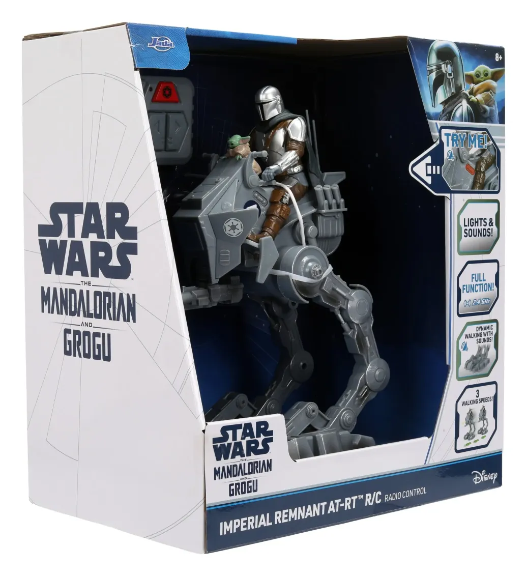 Dieser von einer 2,4-GHz-Fernbedienung gesteuerte Roboter läuft, rennt und dreht sich, während er ikonische Laserkanonengeräusche und filmgetreue Audioeffekte abspielt. LED-Leuchten unterstreichen die Action, und die integrierte Mandalorianer-Figur mit Grogu rundet das Display oder Rollenspiel perfekt ab.