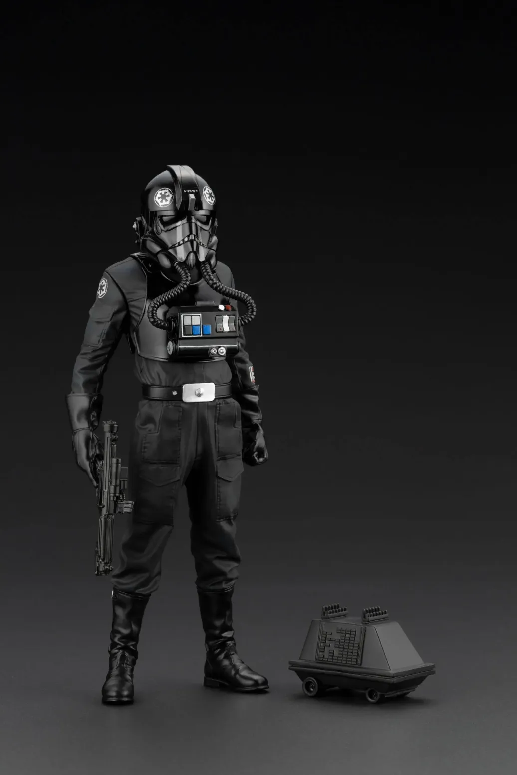 Die detailreiche Tie Fighter Pilot Backstabber & Mouse Droid PVC-Statue im Maßstab 1/10 ist ca. 18 cm groß und wird mit Base in einer Fensterbox geliefert!