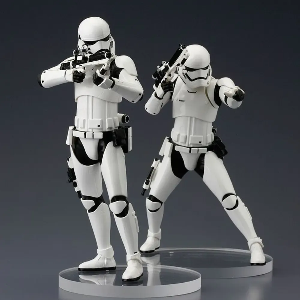Aus Kotobukiyas ARTFX+ Reihe kommt dieser Doppelpack mit zwei Stormtrooper Vinyl Statuen mit jeder Menge Zubehör. Die Statuen lassen sich in unterschiedlichen Posen darstellen. Ideal zum Aufbau einer Stormtrooper-Armee!
