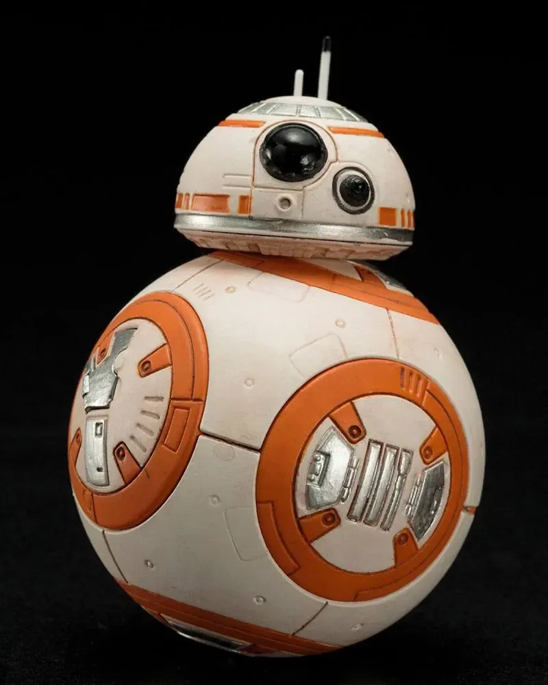 Poe Dameron ist ca. 18 cm, BB-8 ca. 7 cm groß, beide kommen mit Base. Die Füße sind mit Magneten für einen sicheren Stand ausgestattet.
