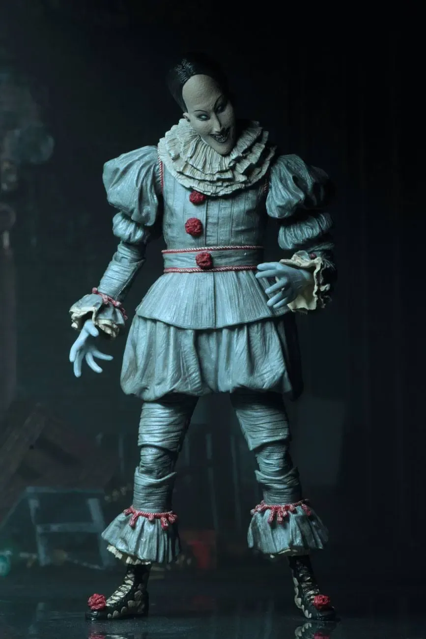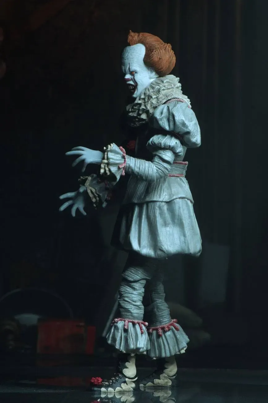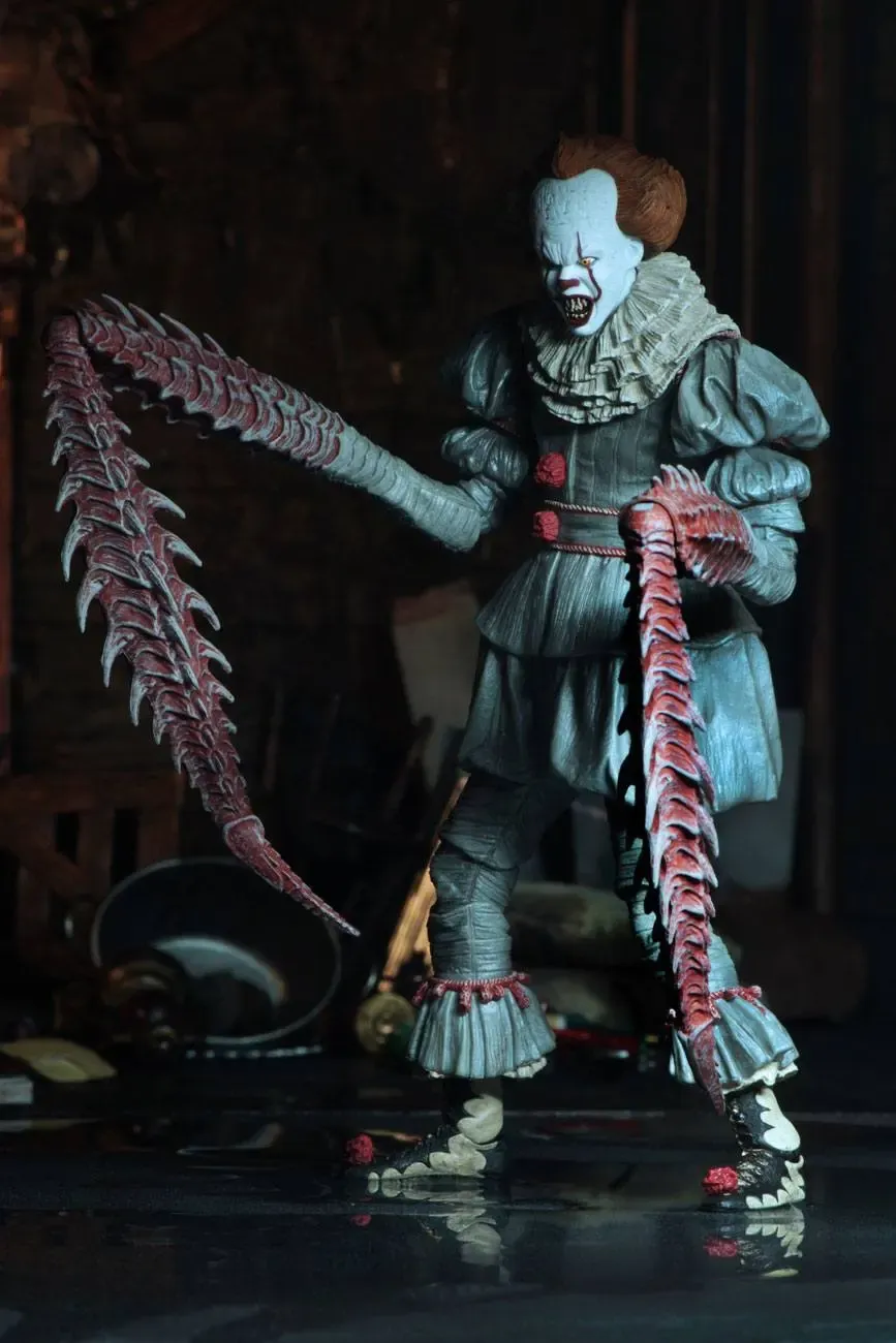 Zur 2017er Verfilmung von Stephen Kings Es kommt diese detailreiche Actionfigur von Pennywise. Die Figur ist ca. 18 cm groß und wird mit weiterem Zubehör und Austauschteilen in einer Fensterbox geliefert. Einer der austauschbaren Köpfe verfügt außerdem über eine LED-Leuchtfunktion.