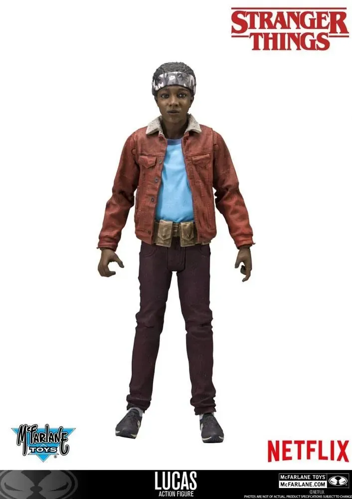 Zur erfolgreichen Sci-Fi-Serie ´Stranger Things´ kommt diese detailreiche, bewegliche Actionfigur von Lucas. Sie ist ca. 15 cm groß und wird mit weiterem Zubehör in einer Blisterverpackung im Retro-Look geliefert.