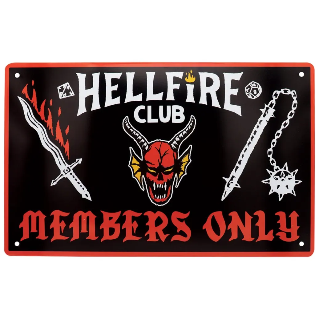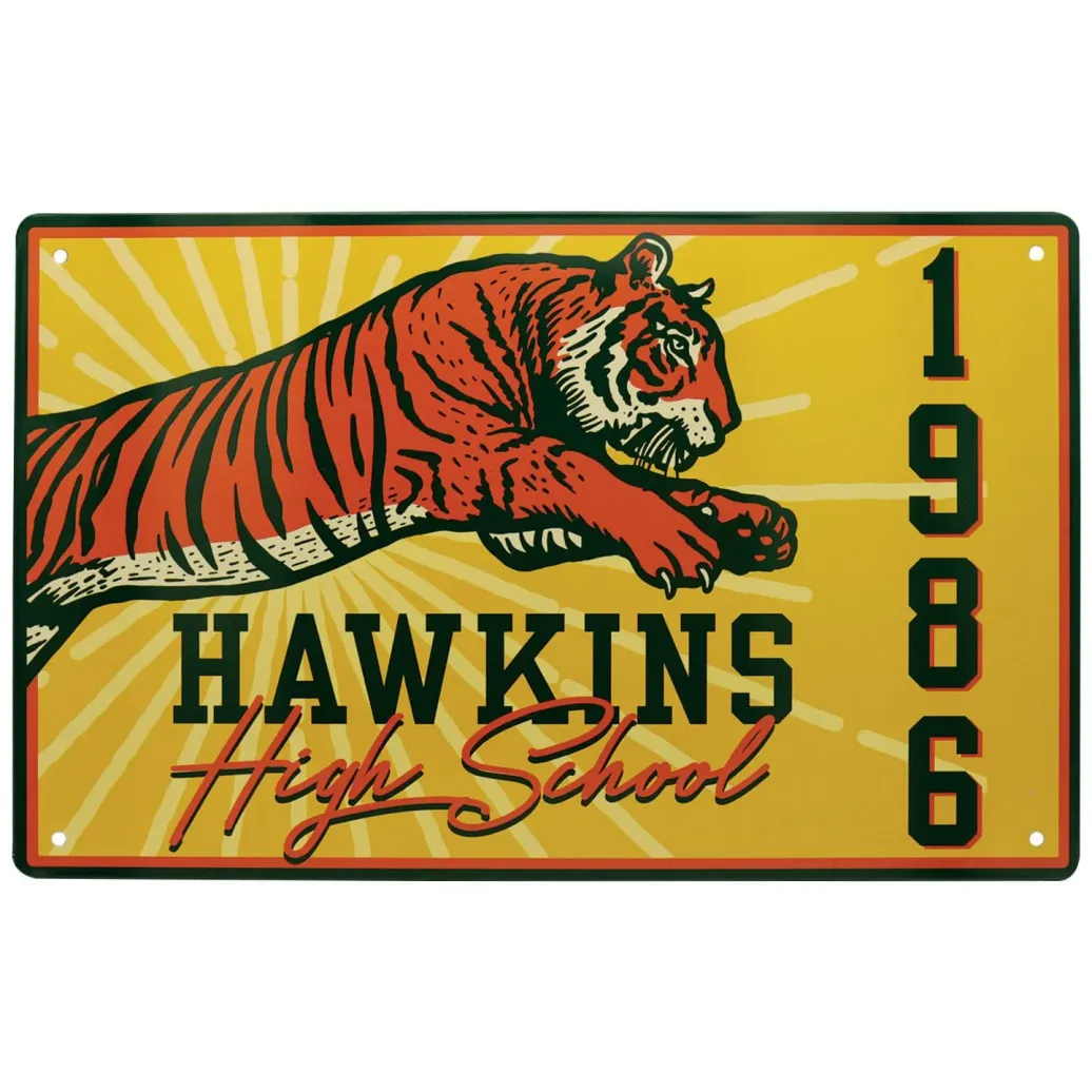 Mit dem Schild "Willkommen in Hawkins", dem Schild der Hawkins High School mit dem Tigers-Maskottchen und einem Schild des Hellfire Clubs würde dieses Set aus drei Stranger Things-Blechschildern an der Wand eines jeden Fans der Netflix-Serie großartig aussehen. Jedes Blechschild ist ca. 280mm x 175mm groß und hat 4 Löcher in jeder Ecke, um eine einfache Präsentation und Wandmontage zu ermöglichen.