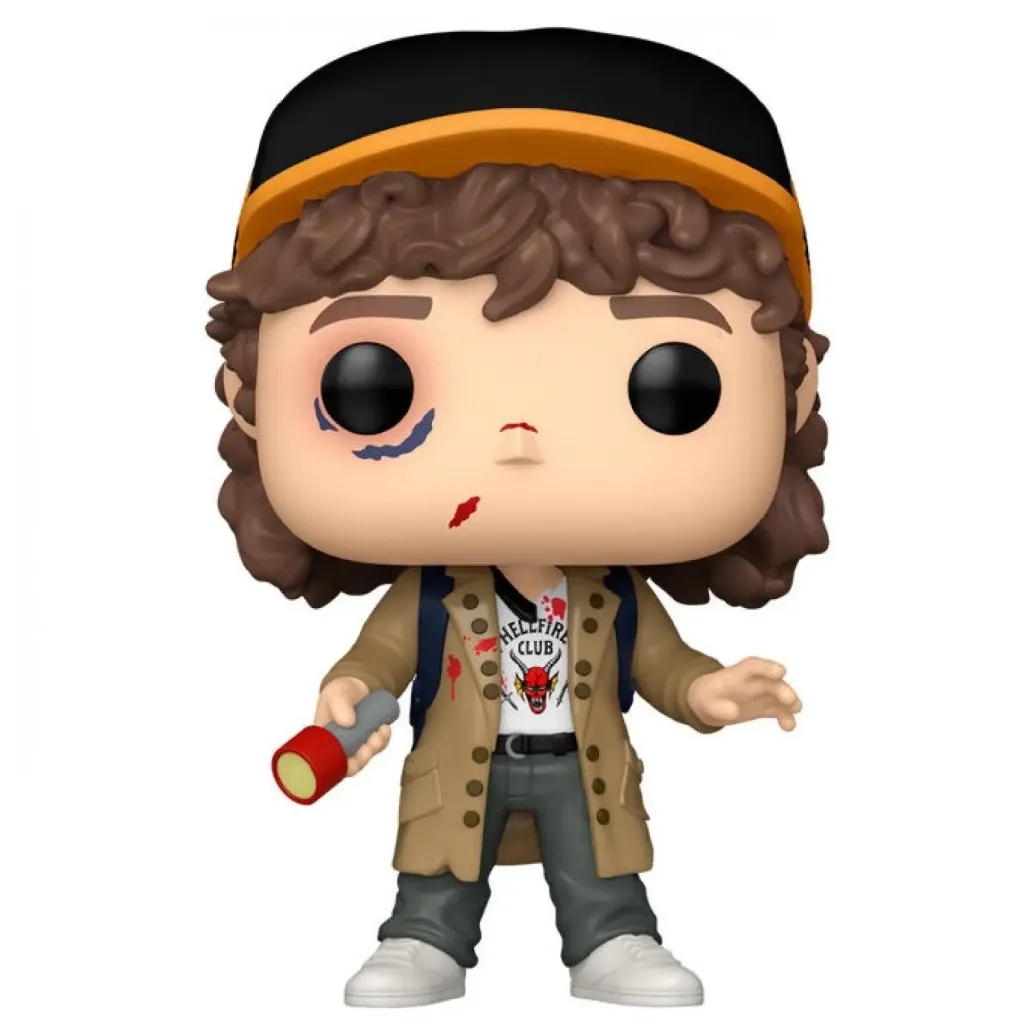 Funko präsentiert diese detailreiche Dustin Henderson Figur in der Flashlight (Battle Damaged) Version. Sie ist ca. 9 cm groß und wird in einer bedruckten Fensterbox geliefert.