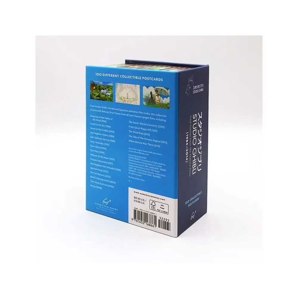 Umfangreiche Sammlung von 100 farbigen Postkarten mit Bildern aus allen Spielfilmen des Studio Ghibli.