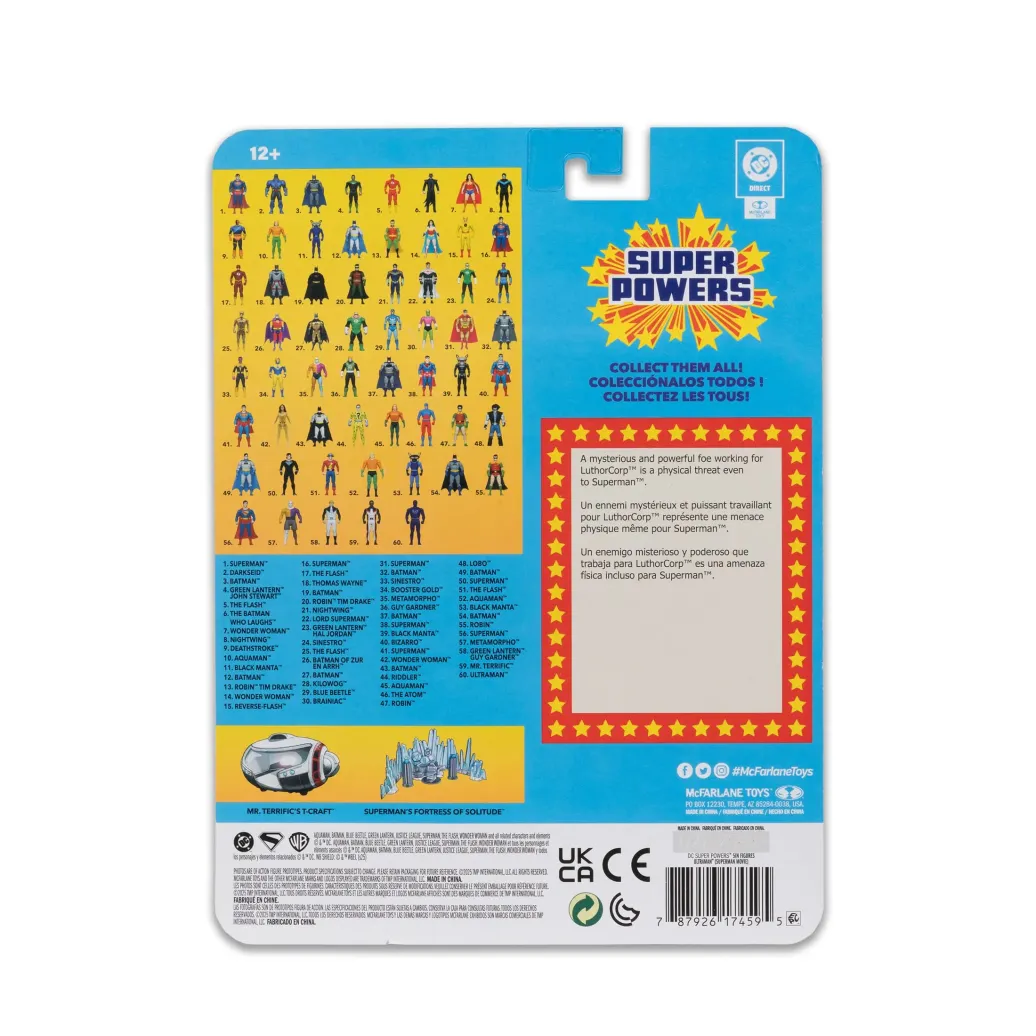Aus dem DC Universum kommt diese detailreiche, bewegliche Actionfigur. Sie ist ca. 12 cm groß und wird mit weiterem Zubehör und Base in einer bedruckten Fensterbox geliefert.