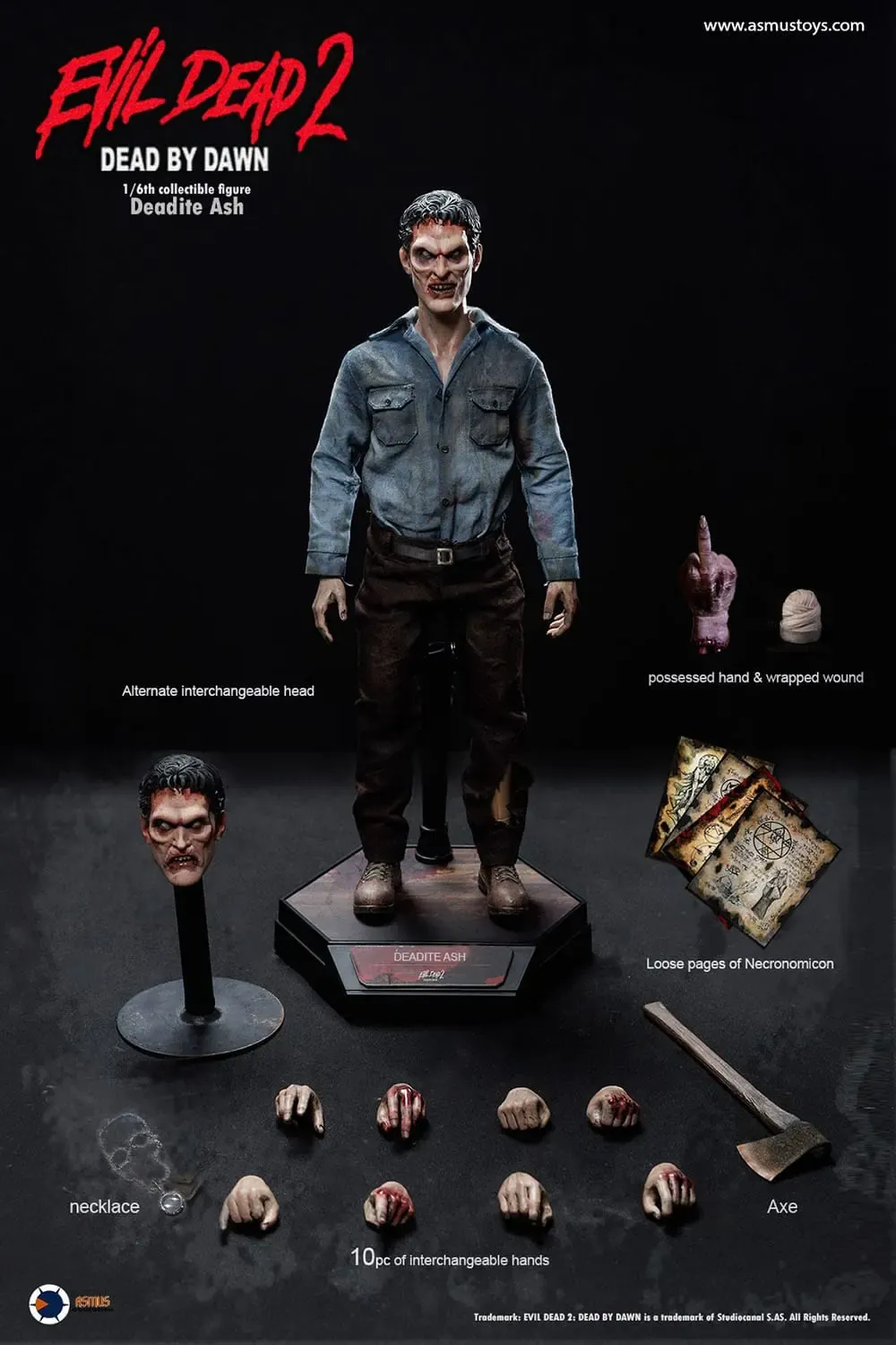 Zum Film "Tanz der Teufel II" kommt diese großartige Actionfigur im Maßstab 1:6. Sie ist ca. 31 cm groß, trägt echte Stoffkleidung und wird mit zahlreichen Austausch- und Zubehörteilen in einer Fensterbox geliefert.