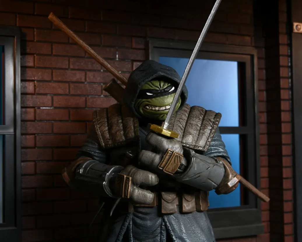 Zu einer der verschiedenen Comic-Varianten von Teenage Mutant Ninja Turtles kommt dieses coole Actionfigur. Sie ist ca. 18 cm groß und wird mit weiterem Zubehör in einer Fensterbox geliefert.