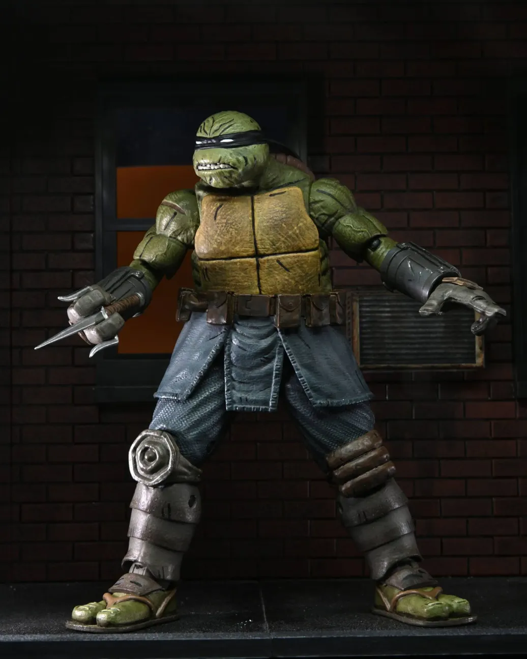 Zu einer der verschiedenen Comic-Varianten von Teenage Mutant Ninja Turtles kommt dieses coole Actionfigur. Sie ist ca. 18 cm groß und wird mit weiterem Zubehör in einer Fensterbox geliefert.