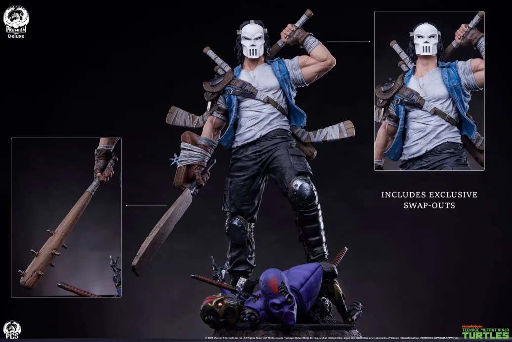 Die Deluxe Edition enthält einen austauschbaren rechten Arm, der einen ramponierten Cricket-Schläger hält und mit einem verstärkten Hockeyhandschuh und einem Blocker ausgestattet ist. In den Blocker ist ein Trio von Wurfsternen eingelassen, die seine Wirksamkeit im Kampf gegen den Foot Clan zeigen.
