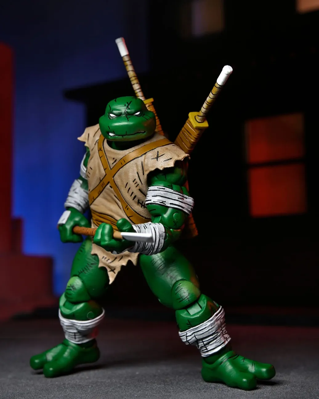Zu einer der verschiedenen Comic-Varianten von Teenage Mutant Ninja Turtles kommt dieses coole Actionfigur. Sie ist ca. 18 cm groß und wird mit weiterem Zubehör in einer Fensterbox geliefert.